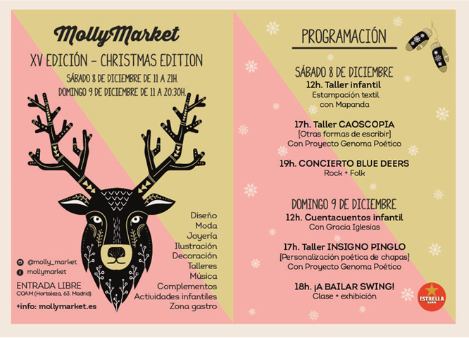 En esta ocasión, coincidiendo con Pop Arq Store, se celebra la XV edición de Molly Market, un mercado de creadores independientes. Diseño, moda, decoración, gastronomía, joyería o ilustración son algunas de las disciplinas que se pueden encontrar en el mismo espacio.