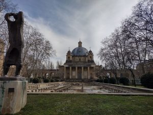 José Yárnoz Larrosa (Pamplona, 1884 – Madrid, 1966) fue uno de los arquitectos más relevantes de la España del siglo XX, destacado tanto por su obra nueva como por sus restauraciones históricas. Estudió en la Escuela de Arquitectura de Madrid entre 1903 y 1910, y durante sus primeros años trabajó en el taller de Antonio Oriol. En 1913, junto a Modesto López, presentó un proyecto de pabellón para la Exposición Universal de Madrid, que le valió una Medalla de Oro en la Exposición Nacional de Bellas Artes.