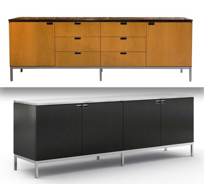 En 1964, Knoll señaló que detrás de la mayoría de los escritorios pesados y ornamentados que se podían ver en las oficinas tradicionales, generalmente había una mesa que se utilizaba como «un recipiente de almacenamiento antiestético». Para evitar esa visión «lamentable», Florence diseñó una credenza elegante y altamente funcional. «Lo hice porque necesitaba un mueble para un trabajo y no estaba allí, así que lo diseñé», afirmaba Florence. Este modelo, es un diseño ideal para tener en una oficina, ya que contiene múltiples archivadores y cajones de papelería. La parte superior de mármol agrega una sutil ornamentación.