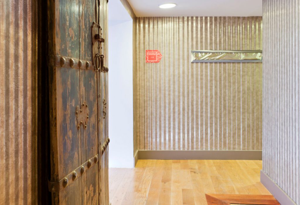 Espacio que da la bienvenida a la planta y acompaña al visitante con un juego de reflejos que producen una sensación cambiante durante el recorrido.