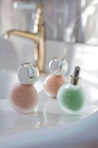En este proyecto, los productos de Guerlain encajan a la perfección. El equipo de Devesa & Agenjo seleccionó cosméticos de la línea L’Essentiel de la firma francesa para colocarlos junto al lavabo: el minimizador de poros con control de brillo y dos bases de maquillaje. En elegantes y delicados frasquitos de cristal, se convierten en elementos decorativos que suman estilo.