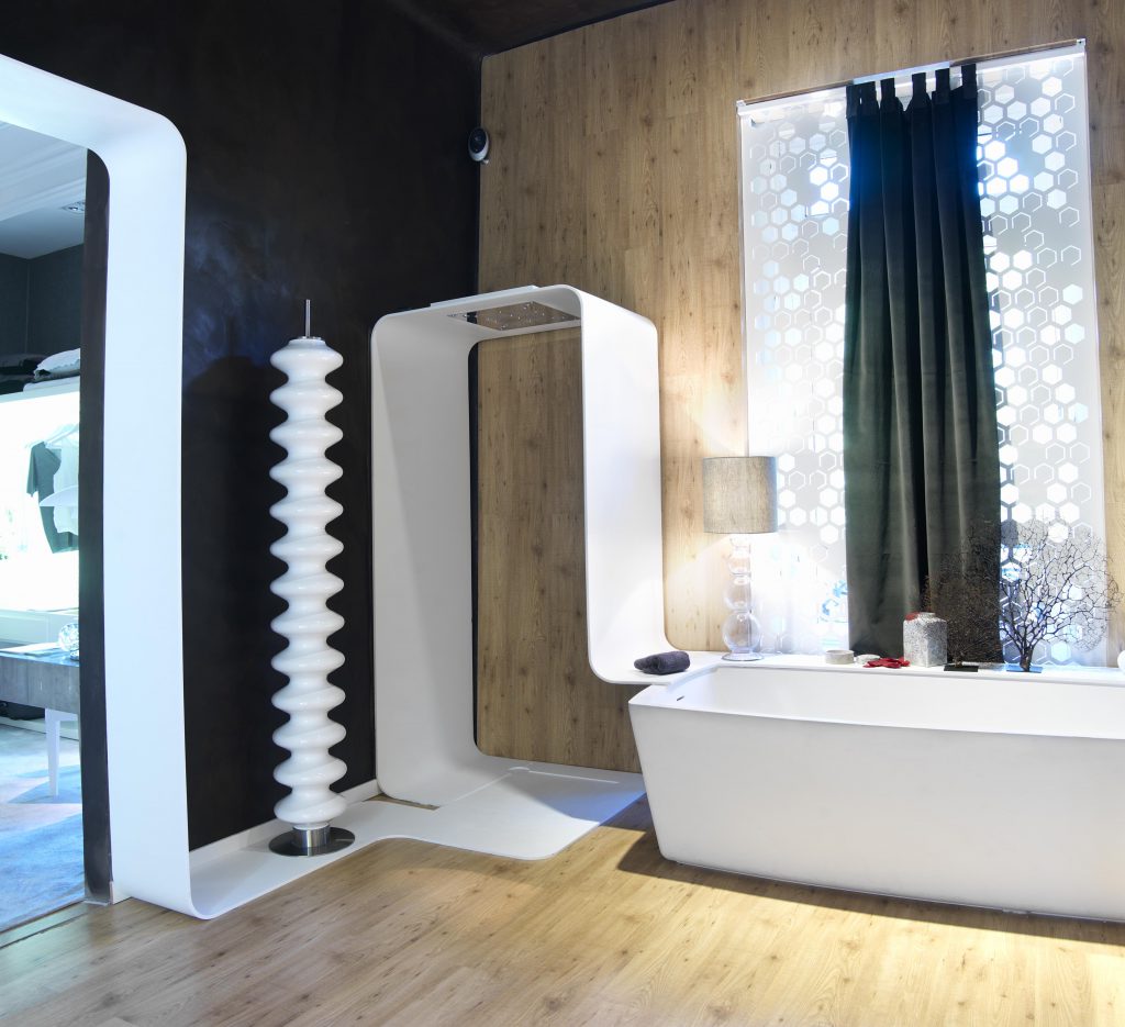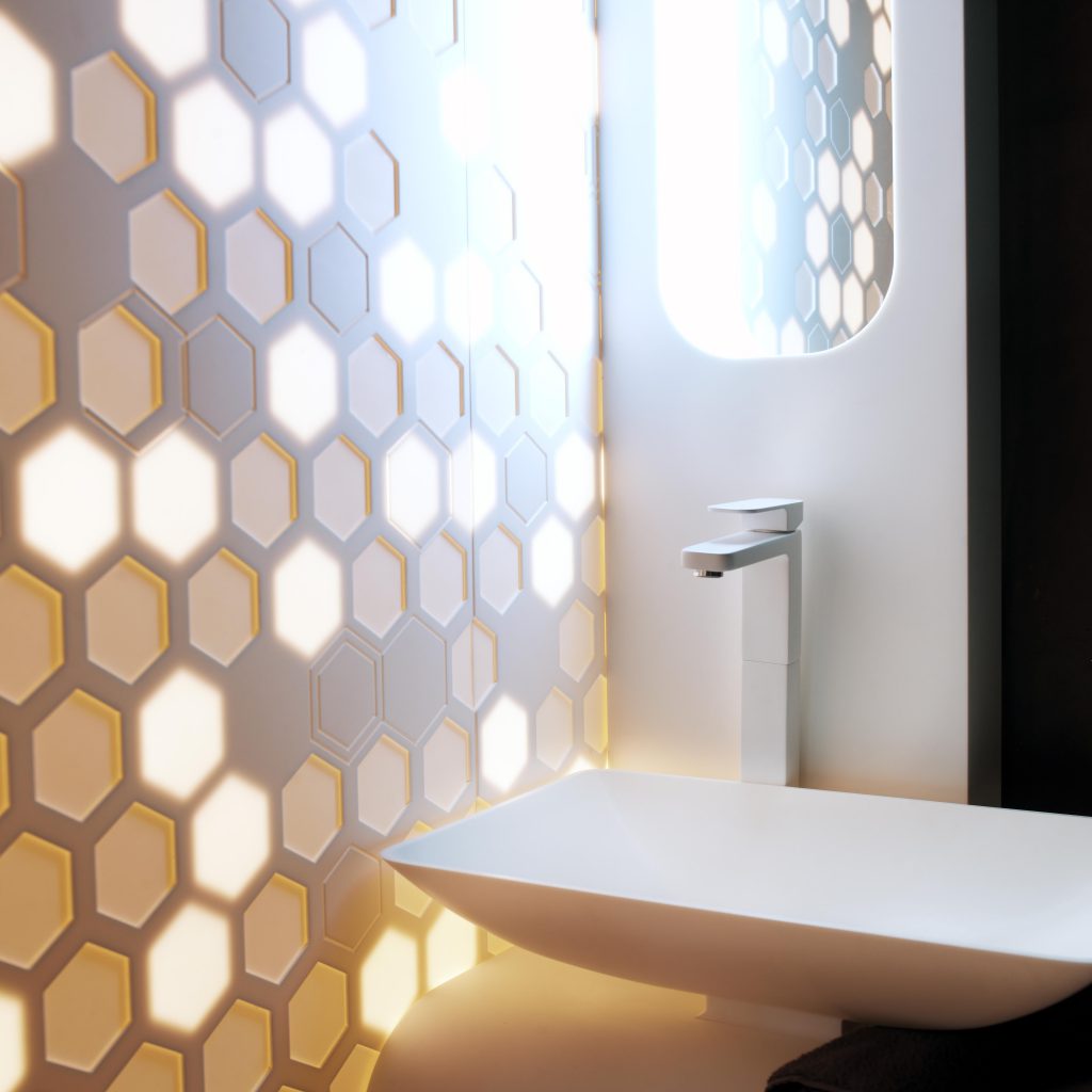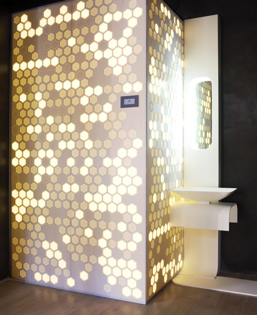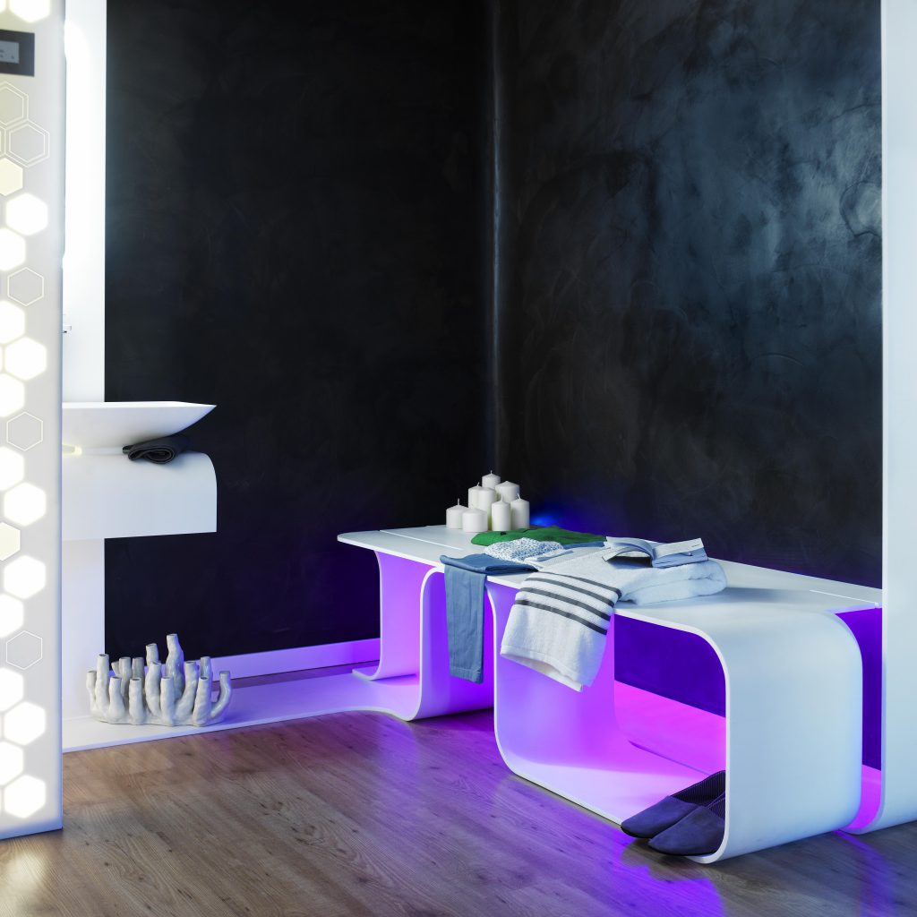 Cada vez más necesitamos momentos en los que desconectar de la rutina, del estrés y de la vida acelerada a la que la sociedad nos empuja. Un programa de equipamiento creado a medida del entorno, y de uno mismo. Su geometría continua permite moldear el espacio dando vida a las diferentes estancias, creando una escultura visual armónica y única para cada intervención: hammam, cromoterapia, área lluvia, área baño, zona de meditación… Esta lengua de mobiliario se integra en un entorno de piedra y madera, elementos naturales que ayudan a equilibrar la mente, y el cuerpo. El sistema audiovisual complementa el espacio, creando un ambiente burbuja que nos aísla y nos permite reencontrarnos con nosotros mismos.