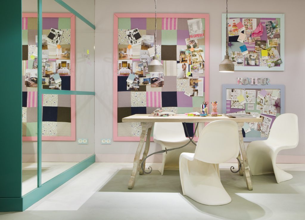 L’Atelier (= taller) espacio donde dejamos llevar la imaginación, un sinfín de texturas y colores que nos ayudan a crear los espacios y a crear momentos oníricos. Con este despacho queremos mostrar nuestra manera de trabajar, cómo coordinamos telas y cómo las trabajamos para conseguir lo mejor en nuestros proyectos. Nos gusta mezclar los dos conceptos con los que trabajamos, de ahí surgen ideas infinitas y desarrollamos otras que nos inspiran en muchas ocasiones. Un espacio versátil, que lo llegamos a transformar según lo que estemos proyectando en cada momento.