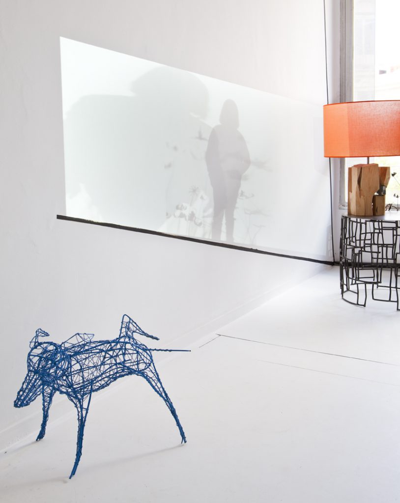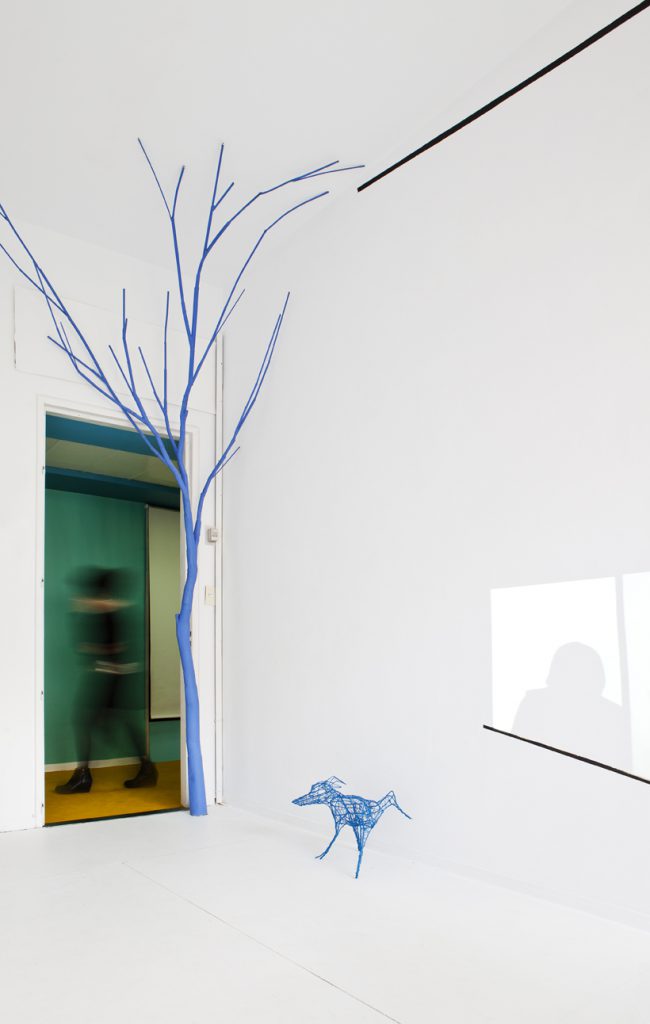 “El proyecto pretende desdibujar los límites físicos de la pared mostrando un espacio de dualidades contrapuestas y su coexistencia con una ‘realidad’ proyectada. El usuario de la habitación desencadena con su presencia un proceso de multiproyección de vídeo sujeto a un algoritmo.Así se recrea la sensación de cambio constante.”