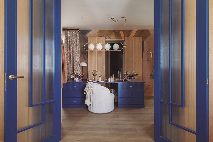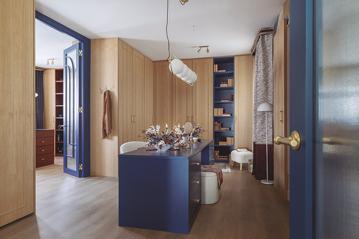 CONCEPTO DEL PROYECTO. Sanrafael presenta en Casa Decor 2026 “Cuando nadie mira”, un vestidor pensado como refugio personal. Un espacio íntimo donde diseño, emoción y autocuidado conviven a través del roble, los tonos azules y granates, creando una experiencia serena que invita a detenerse, sentirse y ser uno mismo.
