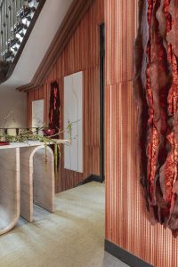 También hubo lugar para la innovación más experimental. En el proyecto «Grounding«, las interioristas de Calzzi & Paccieri recurrieron a diseños desarrollados por Nagami, como celosías impresas en 3D a partir de plásticos reciclados mezclados con café, columnas retroiluminadas y lámparas escultóricas.