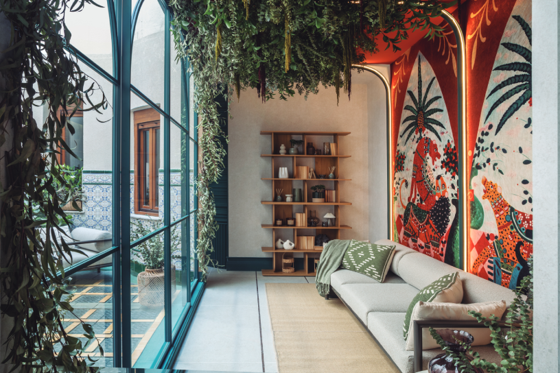 Entre el amplio catálogo de Sidón, encontramos la paneles divisorios que delimitan sin perder elegancia ni luz. «La del Patio», el Espacio de JYSK por Studio Mo, evoca a Ofelia, una joven que habitó este palacio en los años 20, antigua residencia del Marqués de los Vélez y, después, convento. En este patio encontraba su refugio para imaginar otras vidas.