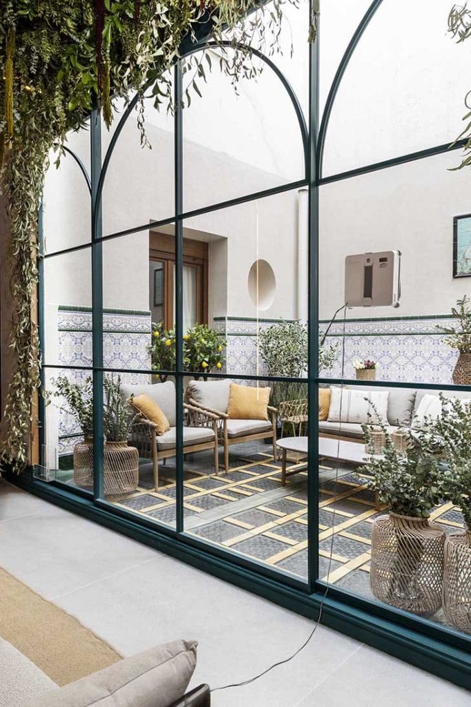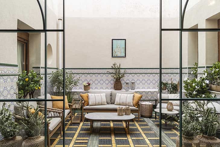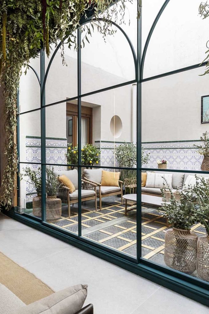 CONCEPTO DEL PROYECTO. Ofelia, la del patio, evoca a la joven que habitó este palacio en los años 20, antigua residencia de los Marqueses de los Vélez y, después, convento. En este patio encontraba su refugio para imaginar otras vidas. Hoy renace como un espacio sensorial donde tradición y naturaleza dialogan en armonía.