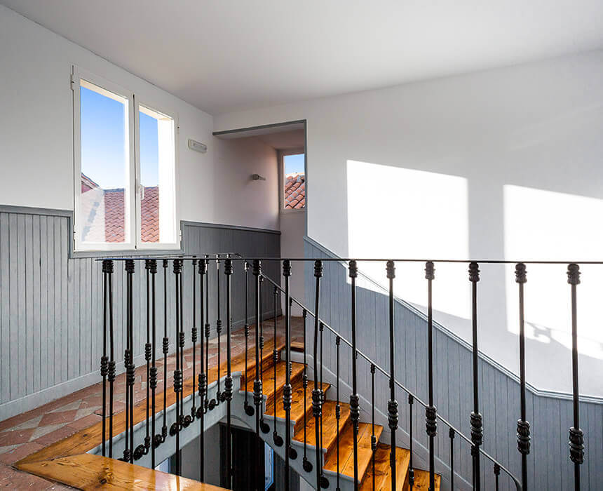 Dos patios interiores dotan de luz las zonas internas, aunque son las citadas fachadas las que proporcionan abundante luz natural a las estancias principales.
