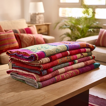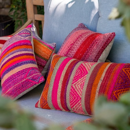 Cojines étnicos tejidos artesanalmente a más de 3000 metros en el corazón de los Andes. Los colores, obtenidos a partir de plantas y semillas, provocan sensaciones que nos conectan con la naturaleza. Piezas slow deco que ayudan a crea un ambiente natural y acogedor.