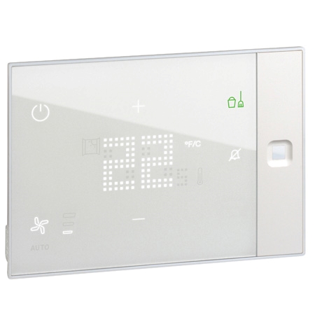 Termostato con controlador de habitación integrado. Un dispositivo inteligente e intuitivo que permite controlar la climatización, iluminación, y las escenas de luz en función de la ocupación.