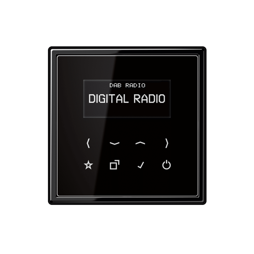 En JUNG, la radio digital es un estándar desde hace tiempo. Nuestra Smart Radio DAB+ para montaje incorporado es fácil de manejar, convence con su sonido claro y su variada programación. La radio DAB le permitirá escuchar todas las emisoras públicas y muchas privadas de todo el país a través de DAB+ y VHF.Como proveedor de primera clase de instalaciones eléctricas modernas, JUNG ofrece una variada gama de productos para el control de la vivienda en las elegantes series A, LS y CD. La Smart Radio DAB+ de JUNG está concebida de tal manera que pueda integrarse de la forma óptima en estas series de diseño de JUNG. Tanto la pantalla táctil de cristal como los altavoces se integran armoniosamente en las correspondientes series de interruptores. La pantalla táctil está disponible en los colores blanco o negro; los altavoces, en los correspondientes colores de los interruptores.