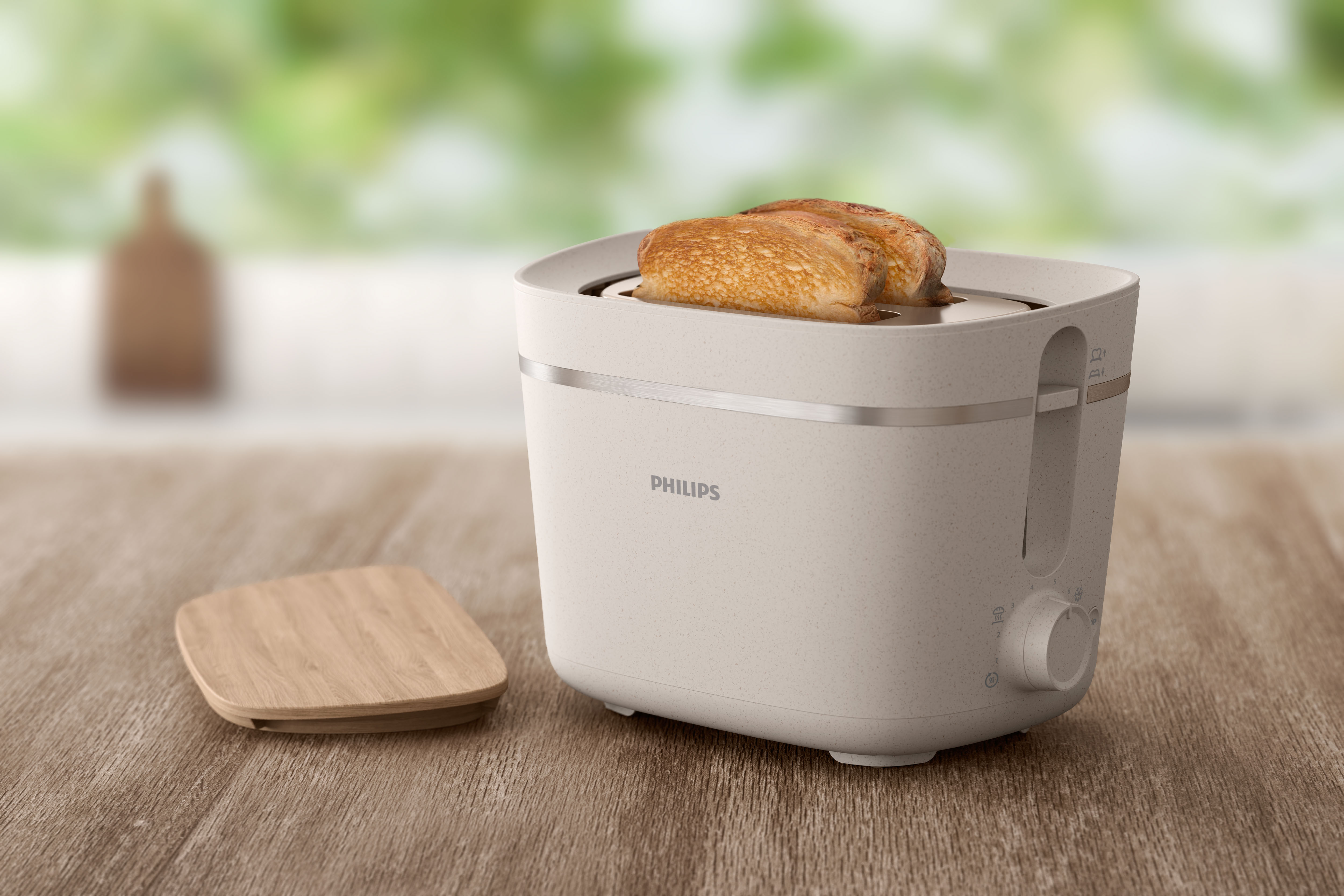 La edición sostenible Eco Conscious de Philips está fabricada de forma sostenible con plásticos 100% de base biológica y características de bajo consumo para dar un pequeño paso hacia un futuro más ecológico. Prepara y disfruta de tus tostadas cada mañana, con un estilo elegante y material sostenible.