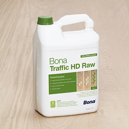 Bona Traffic HD Raw es una barniz al agua que ofrece un elevado nivel de protección para los suelos de madera, al tiempo que mantiene el aspecto y el tacto de la madera sin tratar. Un producto de categoría superior para un aspecto de categoría superior. La estructura única de su superficie transmite una sensación suave y háptica sobre la que es un placer caminar, y además presenta gran seguridad contra resbalones, por lo que es magnífica para hogares con niños y mascotas. Es seguro tanto en la aplicación como en el uso, como indica su clasificación como EC1PLUS por su muy bajo impacto sobre el aire en entornos de interior.