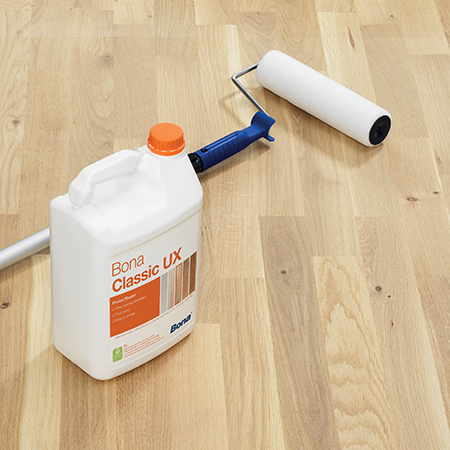 Imprimación al agua para suelos de madera sin tratar que produce un color de madera medio claro. Bona Classic UX es una imprimación al agua que se caracteriza por la facilidad de su aplicación y uso, además de que seca rápidamente y facilita el lijado con abrasivos convencionales. Una base fuerte para cualquier barniz Bona. Clasificación EC1PLUS para emisiones muy bajas en interiores. Se puede utilizar en suelos con calefacción radiante. Para crear un suelo de madera extraordinario y preservar la inversión en el suelo, la imprimación es clave.