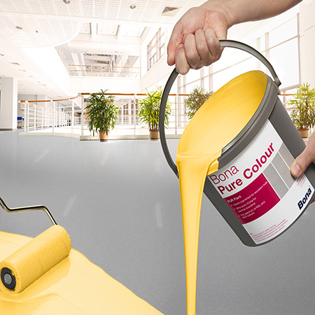 Pintura resistente de poliuretano al agua de dos componentes para renovación de suelos resilientes. Bona Pure Colour garantiza una aplicación rápida y su pigmentación intensa asegura la cobertura con una sola capa en la mayoría de los casos. Está disponible en diez colores estándar, pero puede pedirse en cualquier color de las gamas RAL y NCS.