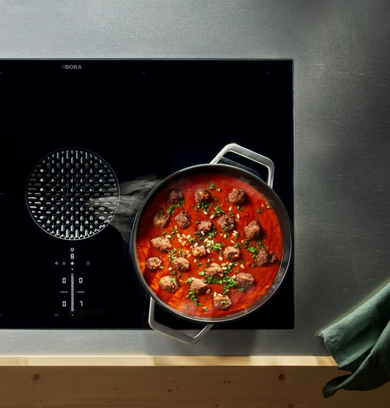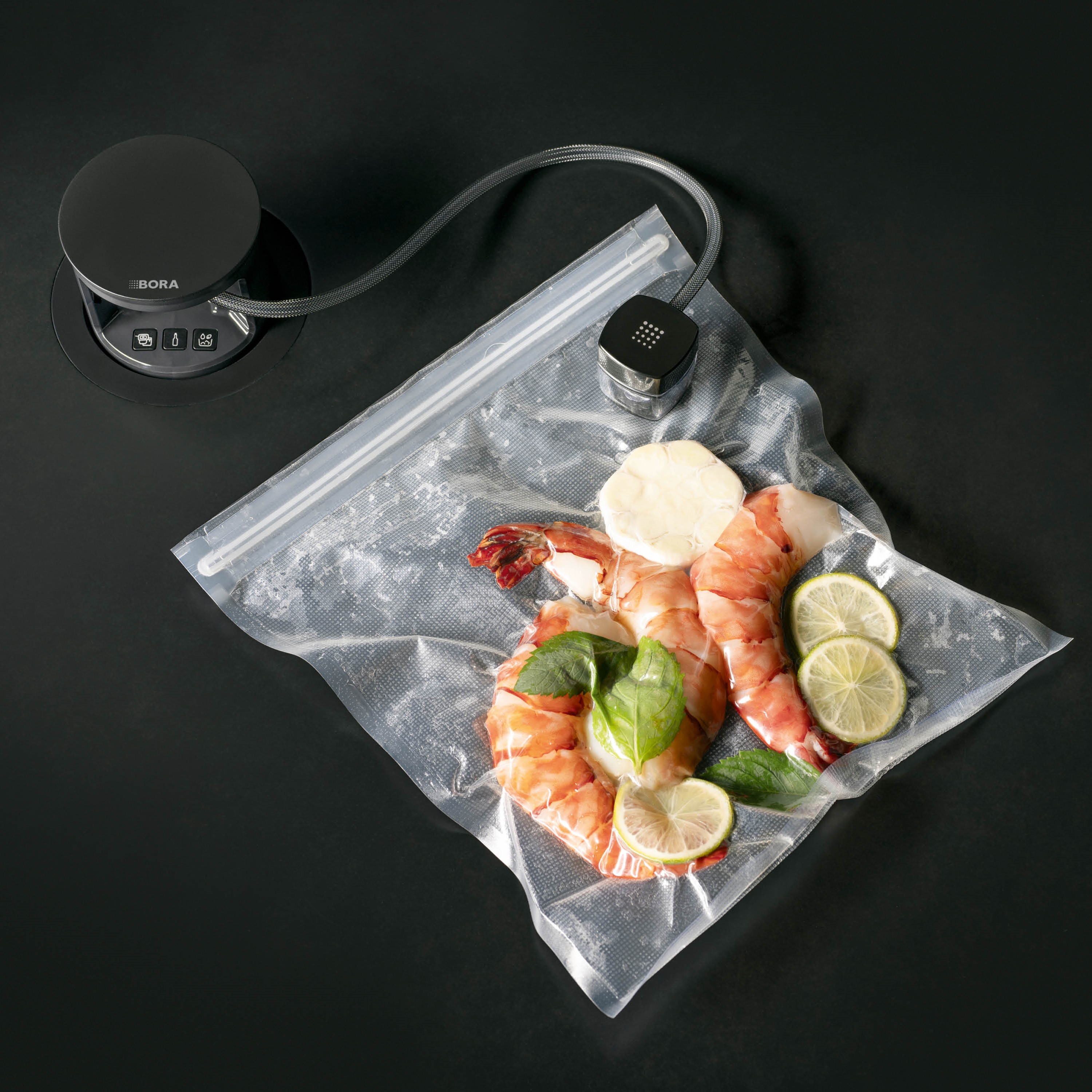 Desde verduras, fruta, carne y pescado hasta salsas, sopas y guisos, crudos o cocinados: el envasado al vacío permite conservar los alimentos durante más tiempo sin que pierdan su sabor o consistencia natural. Con los sistemas de extracción de superficie BORA y el horno de vapor BORA X BO, se pueden preparar perfectamente alimentos marinados y al vacío, por ejemplo, con la técnica sous-vide.