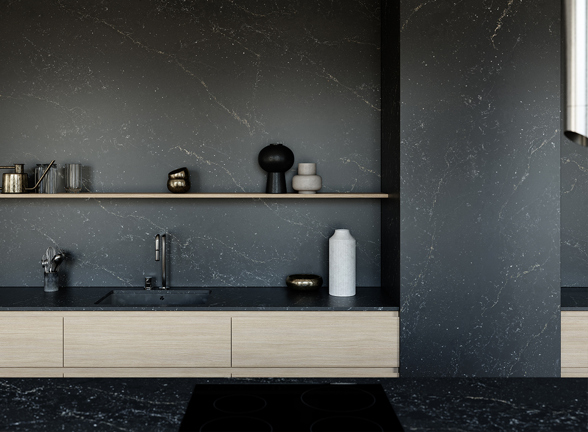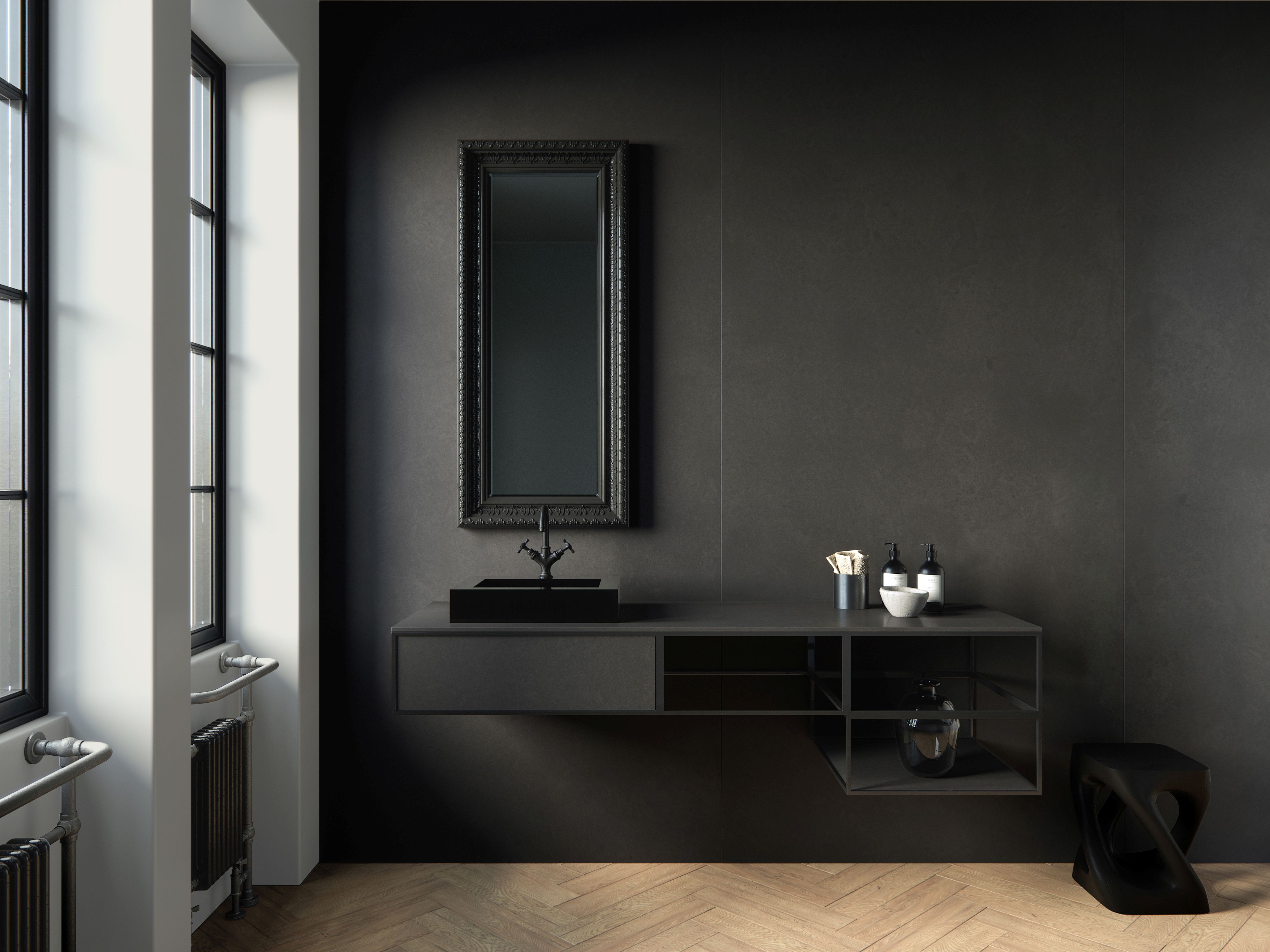Dekton es una superficie porcelánica ultracompacta neutra en carbono con un proceso de fabricación optimizado inspirado en la belleza y estética de la piedra natural que va más allá de la naturaleza, consiguiendo las más altas prestaciones del producto. El color grafite de base oscura, que entremezcla negros y grises y presenta zonas blanquecinas y rojizas en forma de nube reinterpreta la textura de la piedra caliza oscura de grano fino. Su diseño lo hace especialmente indicado para aplicaciones en las que se requiera continuidad de diseño en los cantos.