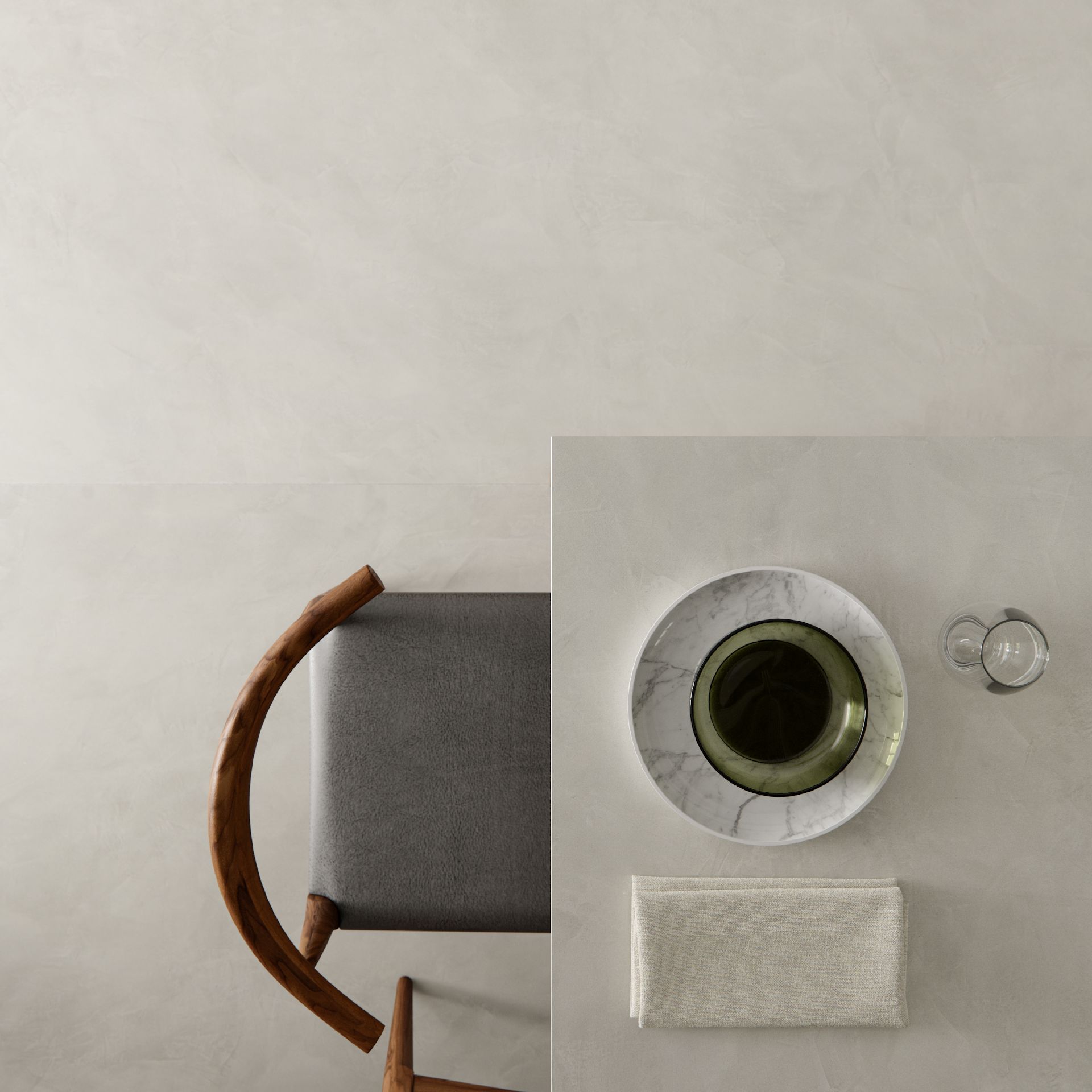 Dekton es una superficie porcelánica ultracompacta neutra en carbono con un proceso de fabricación optimizado inspirado en la belleza y estética de la piedra natural que va más allá de la naturaleza, consiguiendo las más altas prestaciones del producto. Argentium es un color gris neutro distribuido a paletadas, propio de los estucos de cal. Con una textura visual que da movimiento y profundidad a su delicada composición.