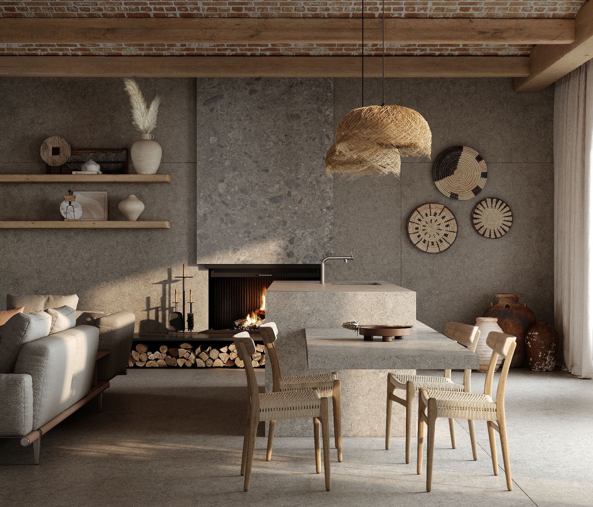 Dekton es una superficie porcelánica ultracompacta neutra en carbono con un proceso de fabricación optimizado inspirado en la belleza y estética de la piedra natural que va más allá de la naturaleza, consiguiendo las más altas prestaciones del producto. La veta a su hilo de esta reinterpretación del Travertino italiano recorre cada pieza de manera desordenada y colorista, llenándolas de matices. Esta atractiva recodificación cromática de la piedra natural maximiza la fuerza de su diseño original, dotándola de una belleza y resistencia incomparable, perfecta para ambientes rústicos o naturales.
