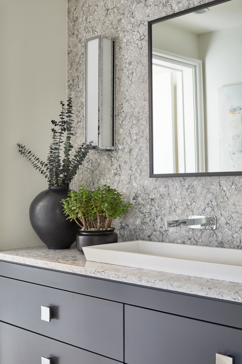 Dekton es una superficie porcelánica ultracompacta neutra en carbono con un proceso de fabricación optimizado inspirado en la belleza y estética de la piedra natural que va más allá de la naturaleza, consiguiendo las más altas prestaciones del producto. Con un juego de color gris con acentos cálidos combina a la perfección con cremas, maderas y colores topo. VK03 Grigio se inspira en la piedra Grigio Alpi, una variedad con macrofósiles de la Piedra Vincenza popularizada por el arquitecto renacentista Andrea Palladio, que la empleó en sus villas y palacios en la región de Vicenza. Su diseño lo hace especialmente indicado para aplicaciones en las que se requiera continuidad de diseño en los cantos.