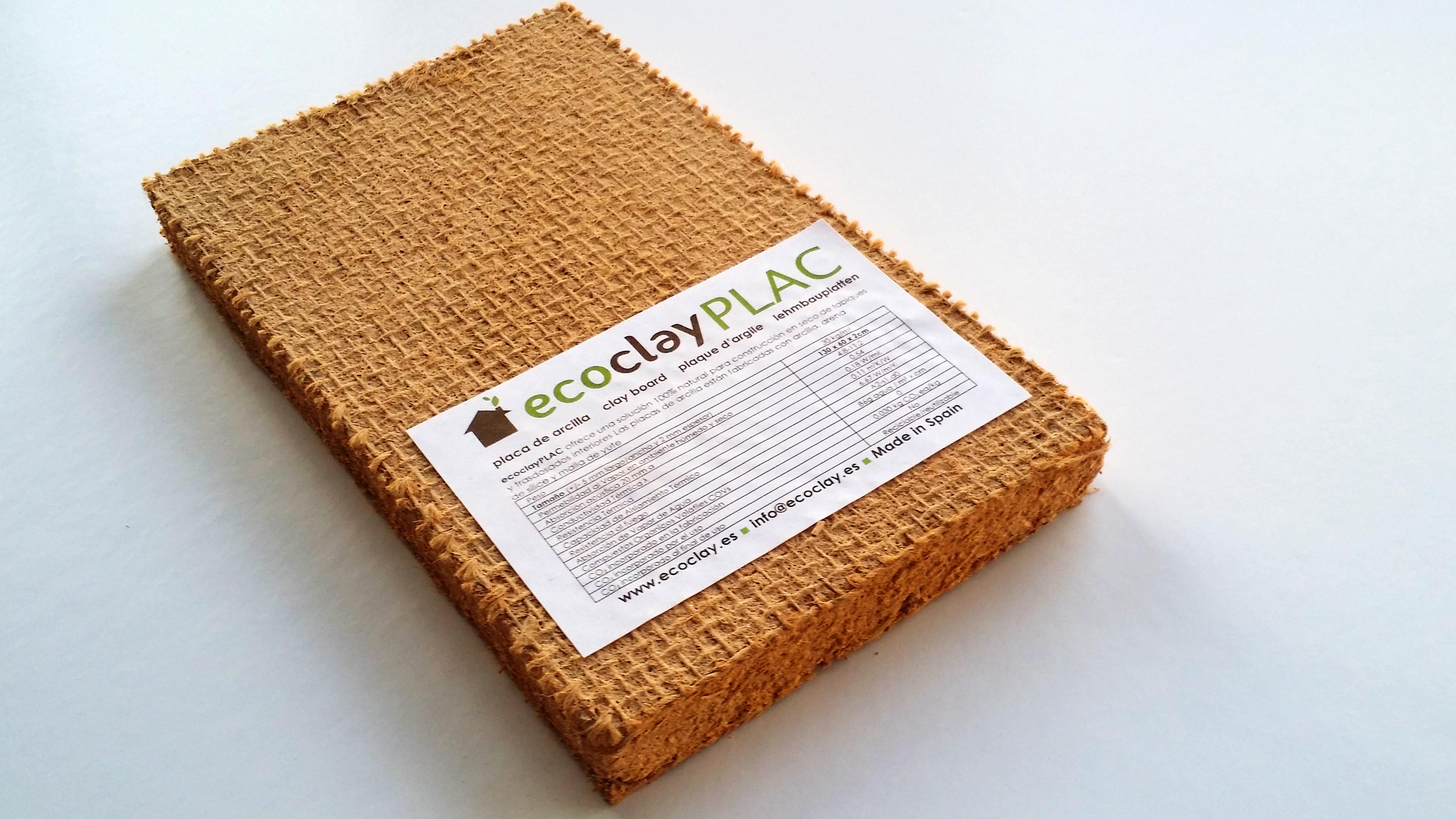 Placa de arcilla para trasdosados y tabiques en seco. 0COVs huella de Carbono 0.04Kg CO2eq/Kg. ecoclayPLAC ofrece una solución 100% natural en la construcción en seco de tabiques, trasdosados y falsos techos en interiores. Se trata de placas compuestas por mortero de arcilla con fibras vegetales y malla de yute por ambas caras con tratamiento de silicato en la parte interior de la placa, para prevenir cualquier posible aparición de microorganismos. Entre sus propiedades destacan la regulación de la humedad relativa de la estancia, su permeabilidad al vapor de agua, su baja conductividad y alta inercia térmica para conseguir el máximo confort con un menor coste energético. Además, favorece la neutralización de olores y partículas tóxicas en su estructura para generar ambientes limpios, es totalmente reciclable.