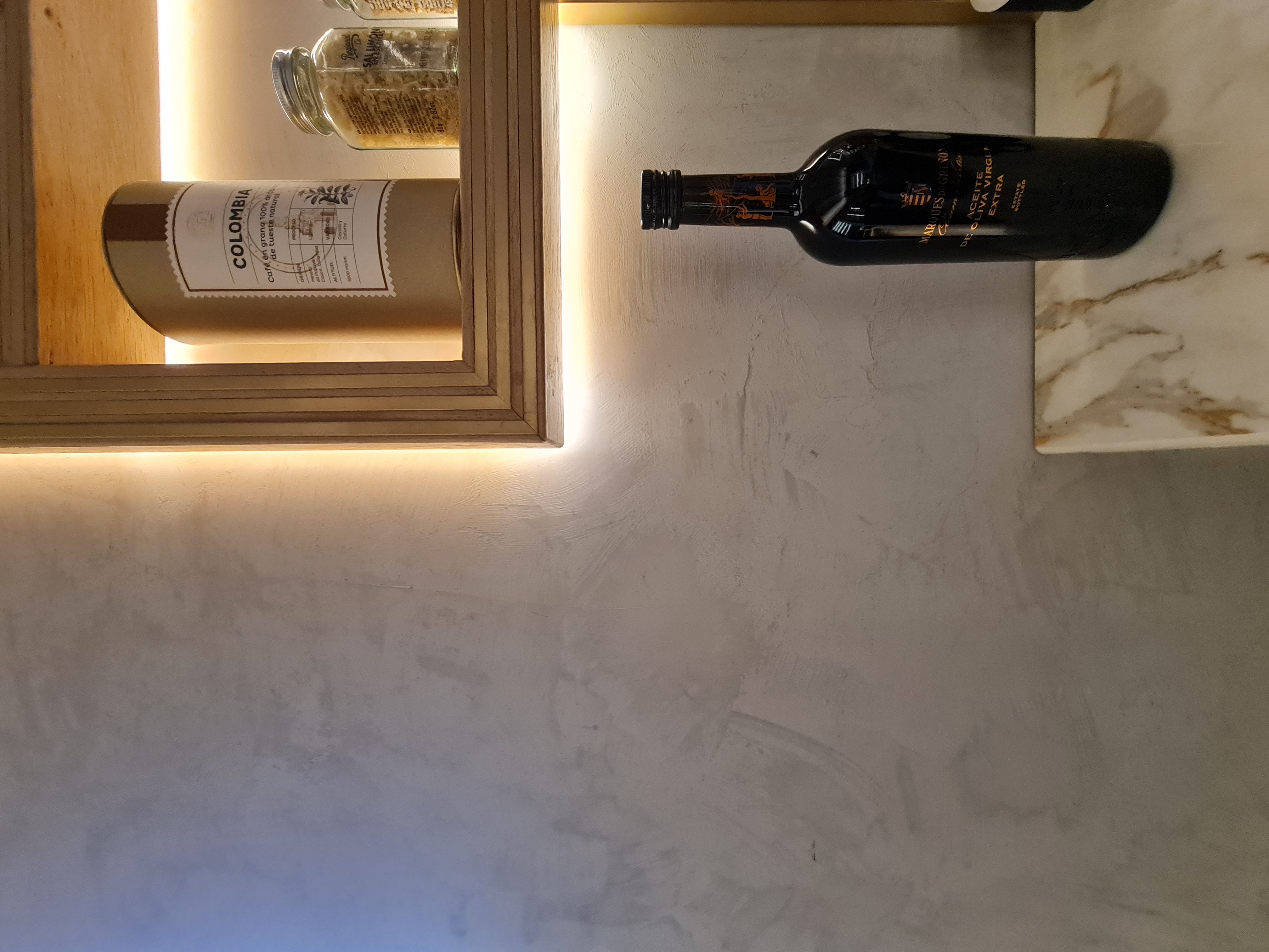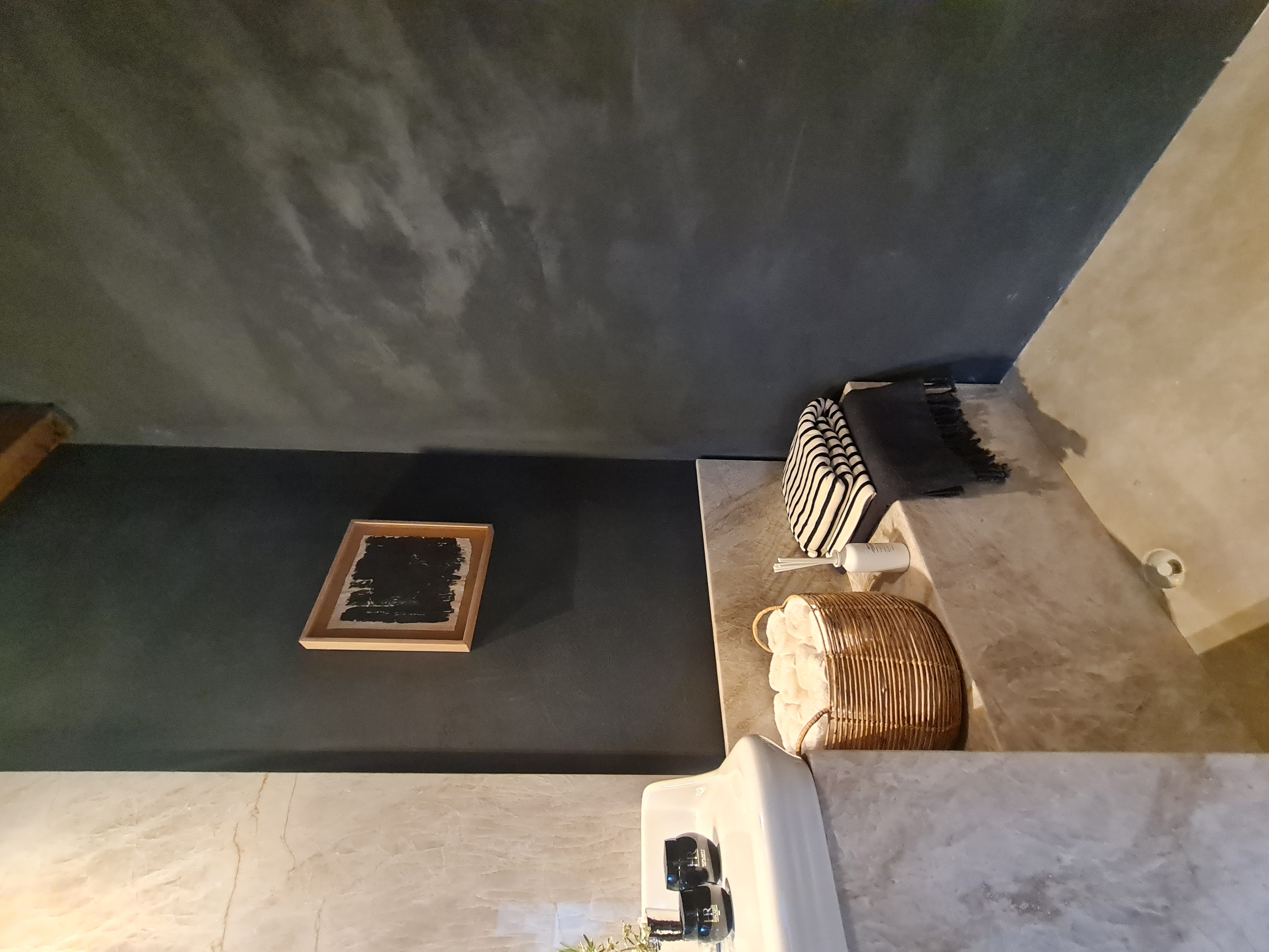 Mortero de arcilla ecoclay acabado ARTICO, aplicado con llana 2mm sobre el paramento existente. Nuestro mortero de arcilla ecoclay 100% natural a base de arcillas de hace 98 millones de años. No contienen Compuestos Orgánicos Volátiles y generan confort y calma en las estancias por las propiedades intrínsecas de las arcillas que utilizamos para fabricarlos como son; higroscopicidad que es la regulación de forma pasiva de la humedad relativa de las estancias manteniéndola alrededor del 50%, mejoran el aislamiento térmico y acústico altamente saludables 100% reutilizables.
