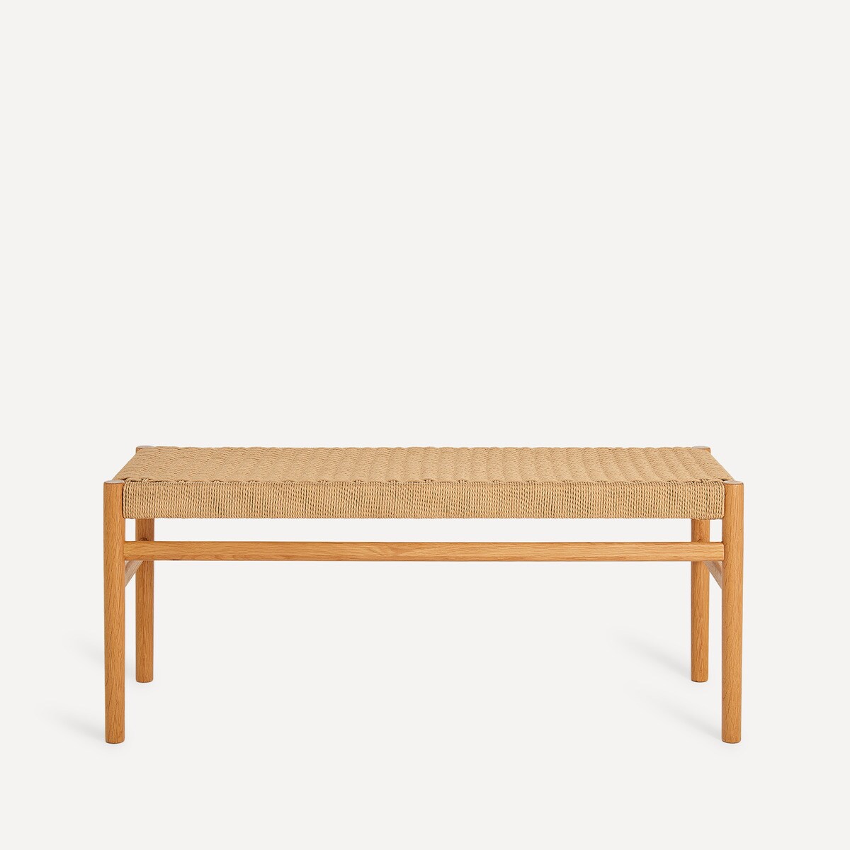 Banco de pie de cama de la serie Lumpur, realizado con estructura de madera de roble, un material resistente y duradero. Un estilo tradicional y natural que quedará perfecto en cualquier habitación. Medidas: 110 (ancho) x 46,5 (alto) x 40 (largo) cm Peso: 6,8 kg
