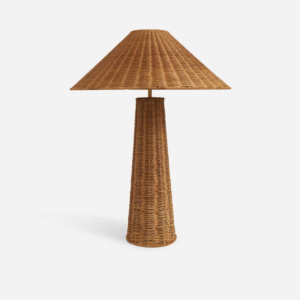 Lámpara de mesa de la serie Sendai, que destaca por su diseño natural realizado en ratán trenzado a mano y forma cónica. Incorpora cable con interruptor. Solo para uso interior. Medidas: 50 (ancho) x 65 (alto) x 50 (largo) cm