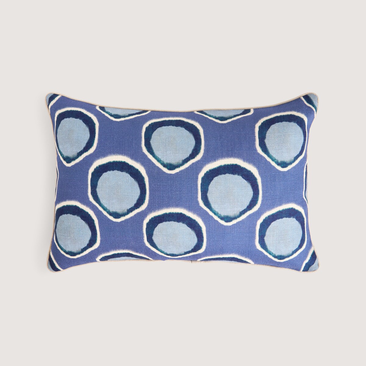 Cojín decorativo rectangular Pothia con diseño geométrico de motivos marinos. Confeccionado en 80% viscosa y 20% lino. Incluye relleno de fibra hueca siliconada.