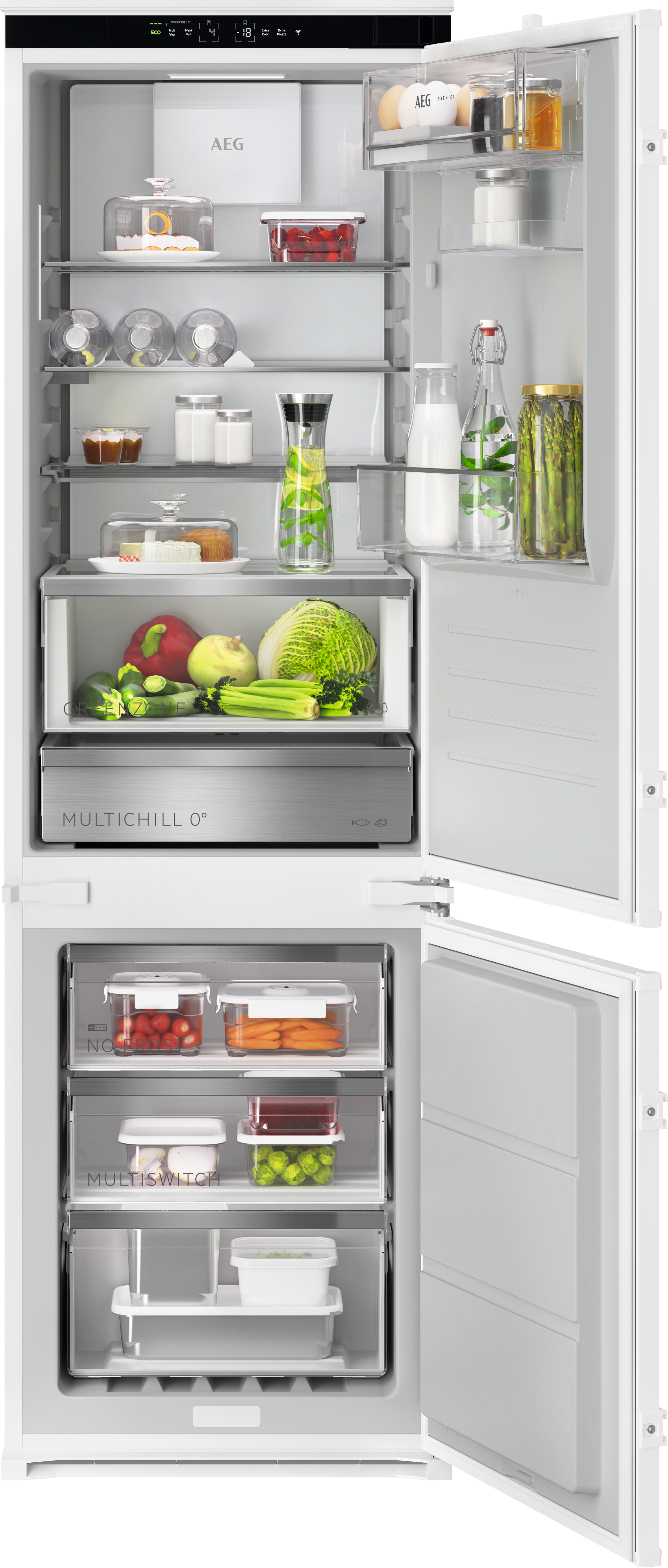 UNA REFRIGERACIÓN DE PRIMERA QUE SE ADAPTA A TUS ALIMENTOS – MultiChill 0° C, la flexibilidad y personalización que necesitas. CAJÓN MULTICHILL 0°: LA FLEXIBILIDAD DEFINITIVA PARA PRESERVAR ALIMENTOS – Almacenaje personalizado con el cajón adaptable MultiChill 0°. PROGRAMAS ALIMENTARIOS AEG EN LA APP: EMPIEZA A COCINAR EN LA NEVERA. – Utiliza la aplicación AEG para preparar ingredientes con un sabor excepcional. UNA NUEVA ERA EN MATERIA DE INNOVACIÓN. FRIGORÍFICO COMBI ÚNICO DE PLÁSTICO RECICLADO – El revestimiento interior del frigorífico combi único está hecho con un 70 % de plástico reciclado. GREENZONE+ AYUDA A QUE FRUTAS Y VERDURAS MANTENGAN SUS PROPIEDADES NUTRITIVAS – Hasta un 95 % de conservación de las vitaminas con GreenZone+. EL ESPACIO DEL CONGELADOR SE CONVIERTE EN FRIGORÍFICO. PARA MAYOR FLEXIBILIDAD – Un congelador versátil: utilízalo como frigorífico o como congelador.
