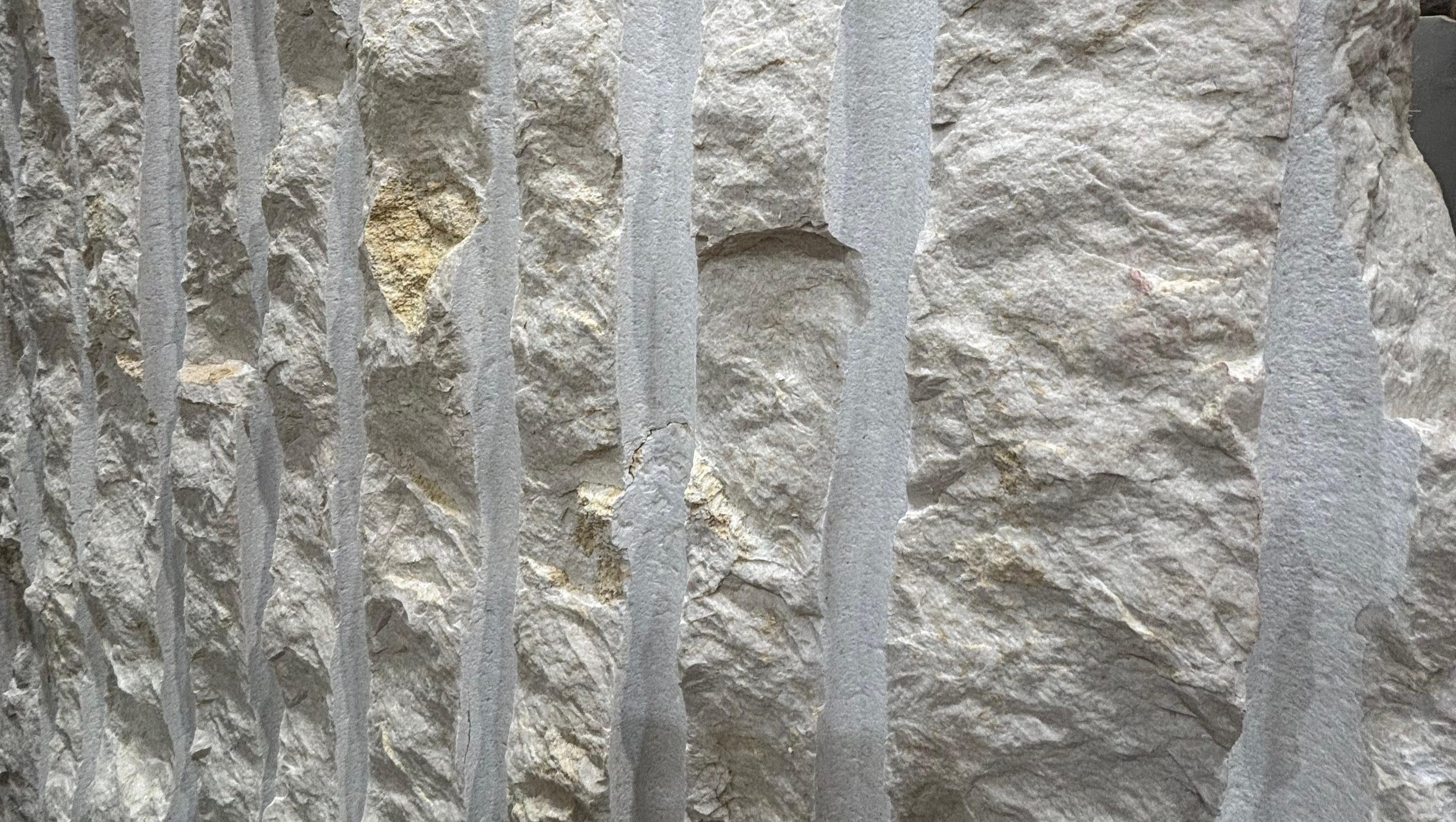 El material Cràter Hard Rock presenta la textura interna a los bloques de piedra natural, rugosidad y pureza aplicada a zonas revestidas de las paredes.