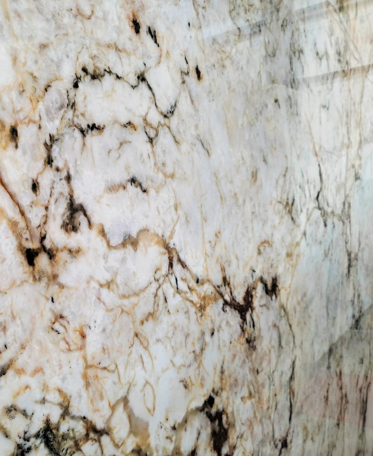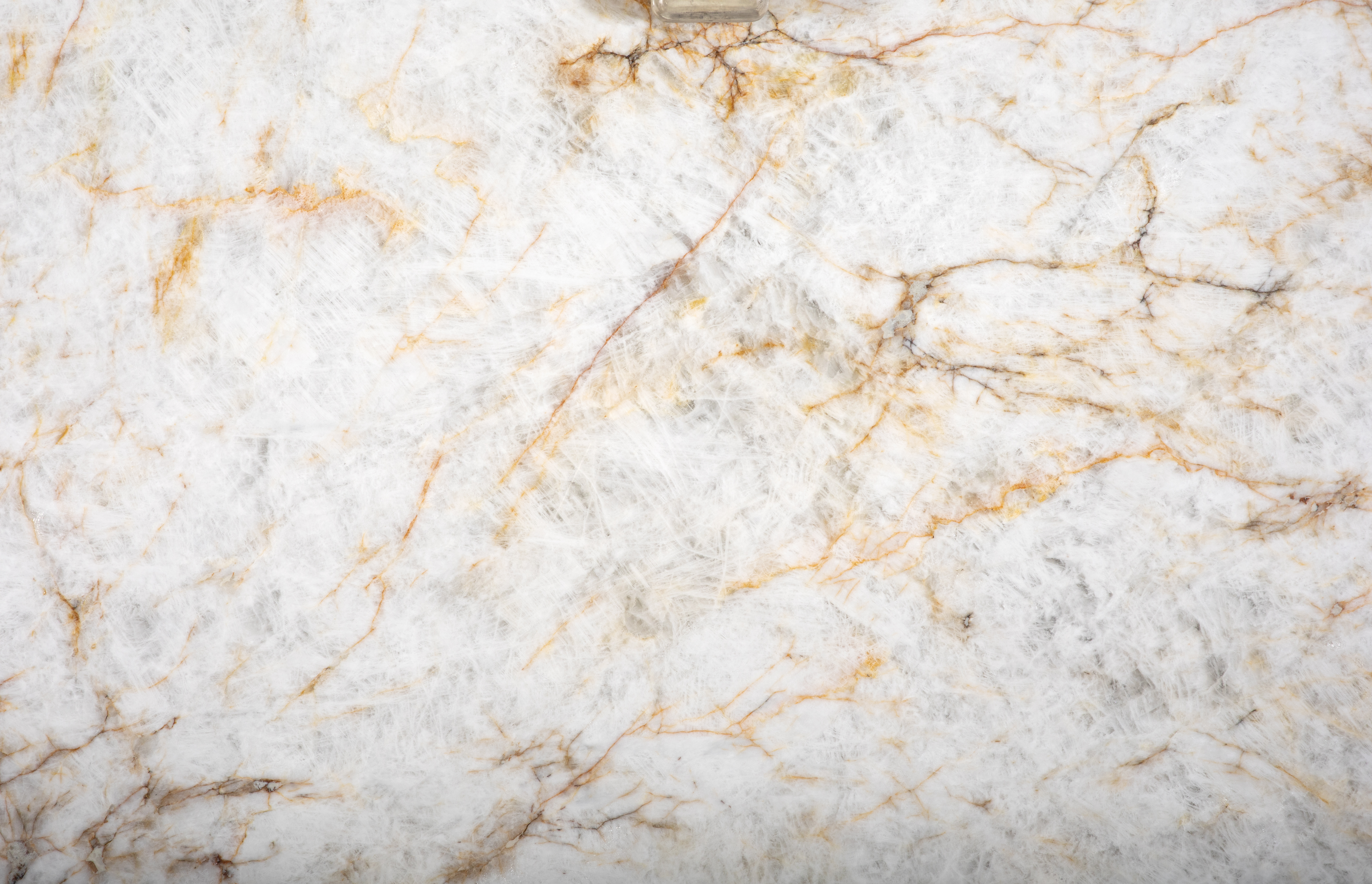 Cuarcita Crystal Gold en la mesa de diseño circular.