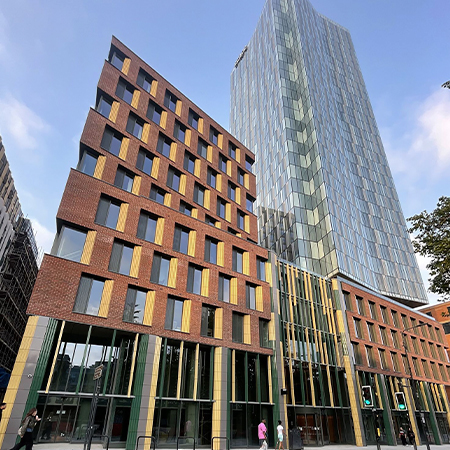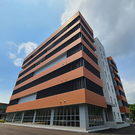 Las fachadas ventiladas cerámicas Favemanc se presentan como soluciones que influyen, no solo a nivel estético, si no que cobran una relevancia inigualable como productos sostenibles. La durabilidad, la ausencia de mantenimiento, la aportación al equilibrio energético de los edificios y el origen 100% natural de la cerámica favorecen el requisito de la sostenibilidad en una época en la que la conciencia ambiental está en primer plano de cualquier proyecto arquitectónico. Las placas cerámicas XB PRO de 17 mm de espesor en color Terracota configuran una envolvente ligera, que gracias a las propiedades fotocatalíticas de nuestra cerámica, aportan beneficios descontaminantes y de autolimpieza.