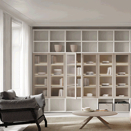 El sistema AirBox de Lagrama ofrece estanterías a medida con un diseño modular y versátil. Permite combinar estantes, cajones y puertas en diferentes acabados, adaptándose a cualquier espacio. Su flexibilidad facilita la creación de composiciones personalizadas, integrando zonas abiertas y cerradas para un almacenamiento funcional y decorativo.