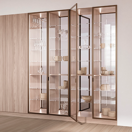 Vitrinas de vidrio VERO: elegancia transparente y ambiente sofisticado para cocinas modernas. Los vitrinas de vidrio Vero combinan una elegante transparencia con materiales de alta calidad. Sus refinados marcos de aluminio y la sutil iluminación añaden toques de estilo, logrando un equilibrio perfecto entre funcionalidad y diseño moderno, ideal para cualquier cocina..