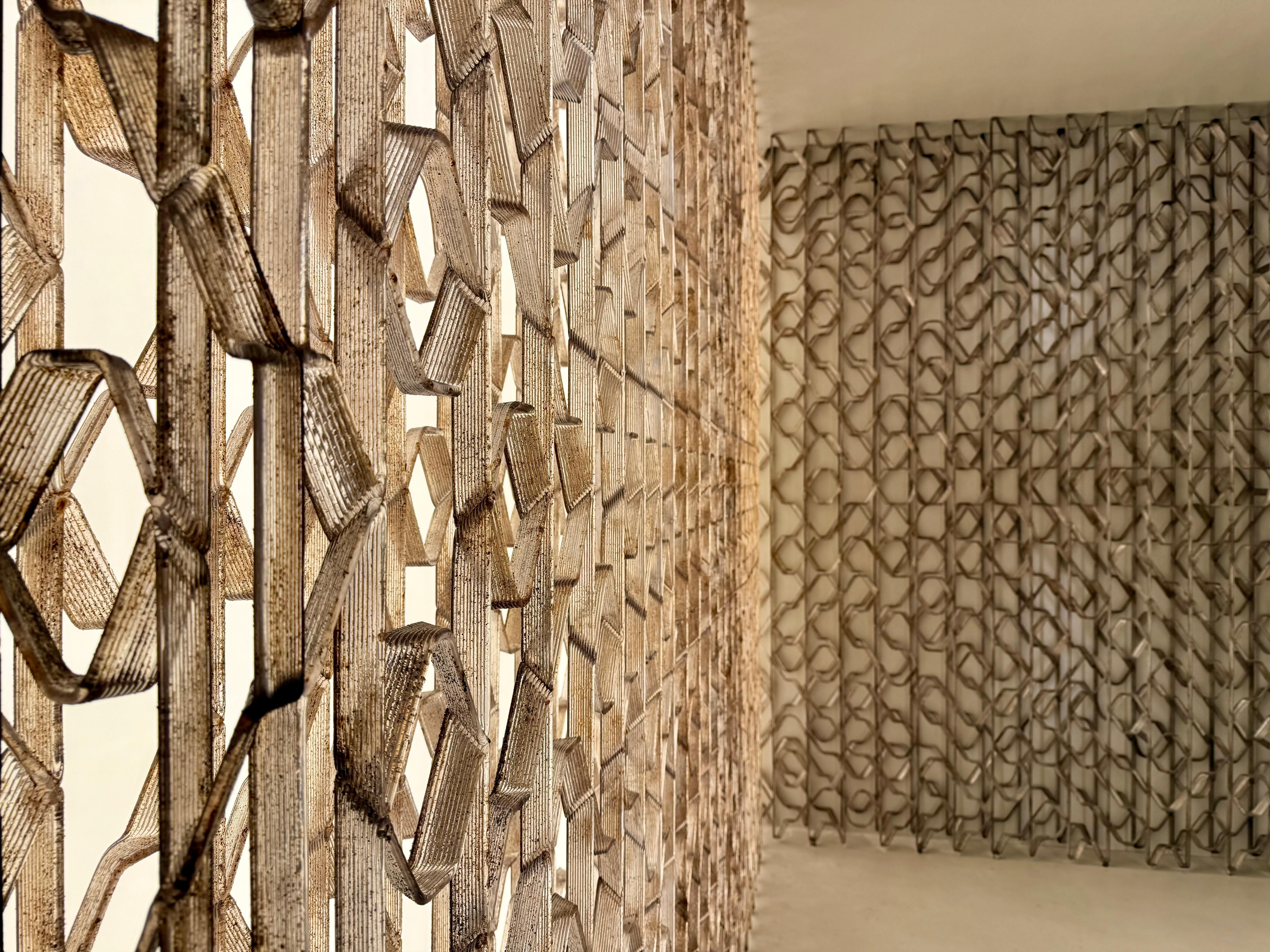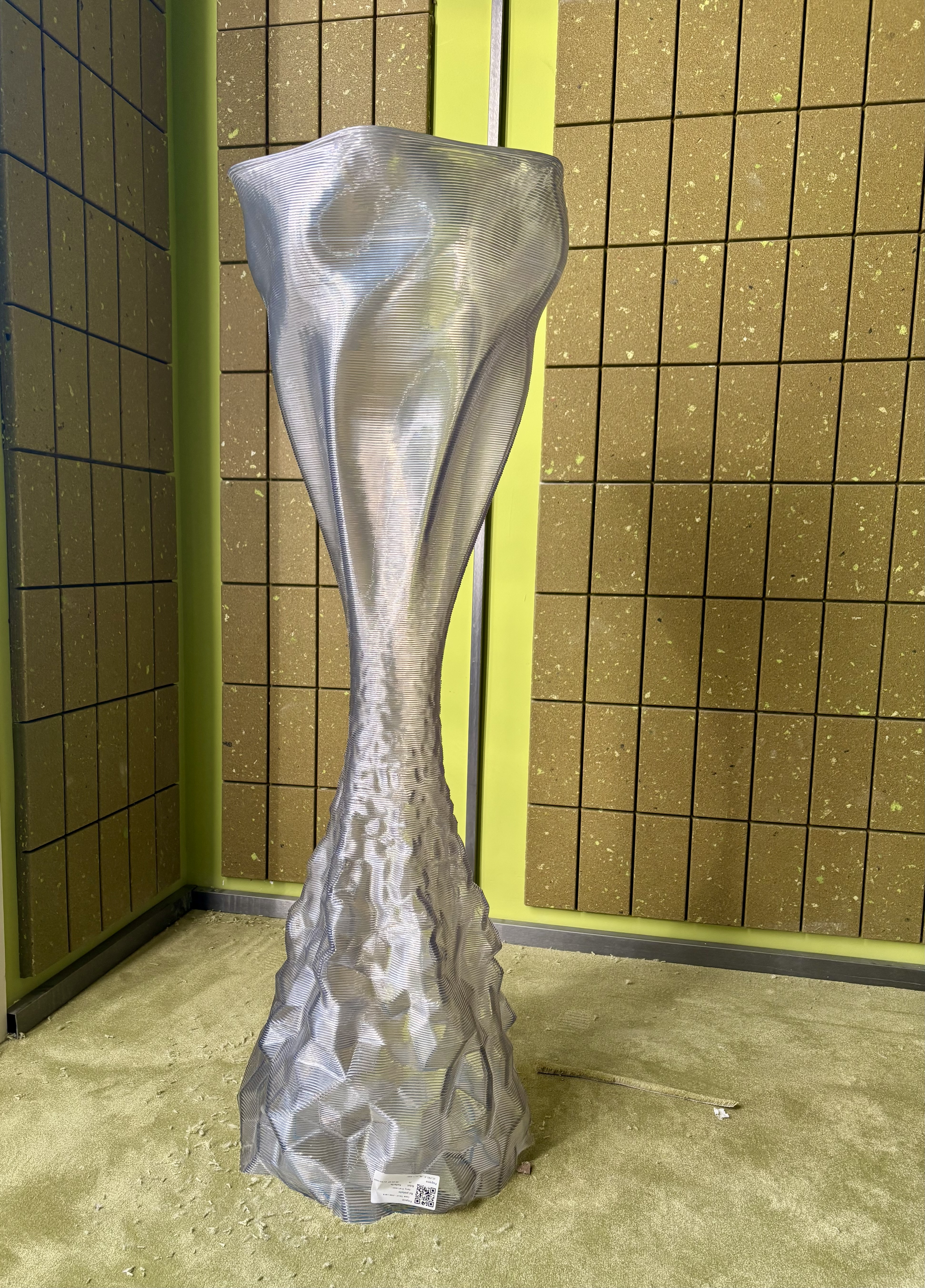 Soporte impreso en 3D con plástico reciclado transparente, impresión con diferentes texturas en una sola pieza