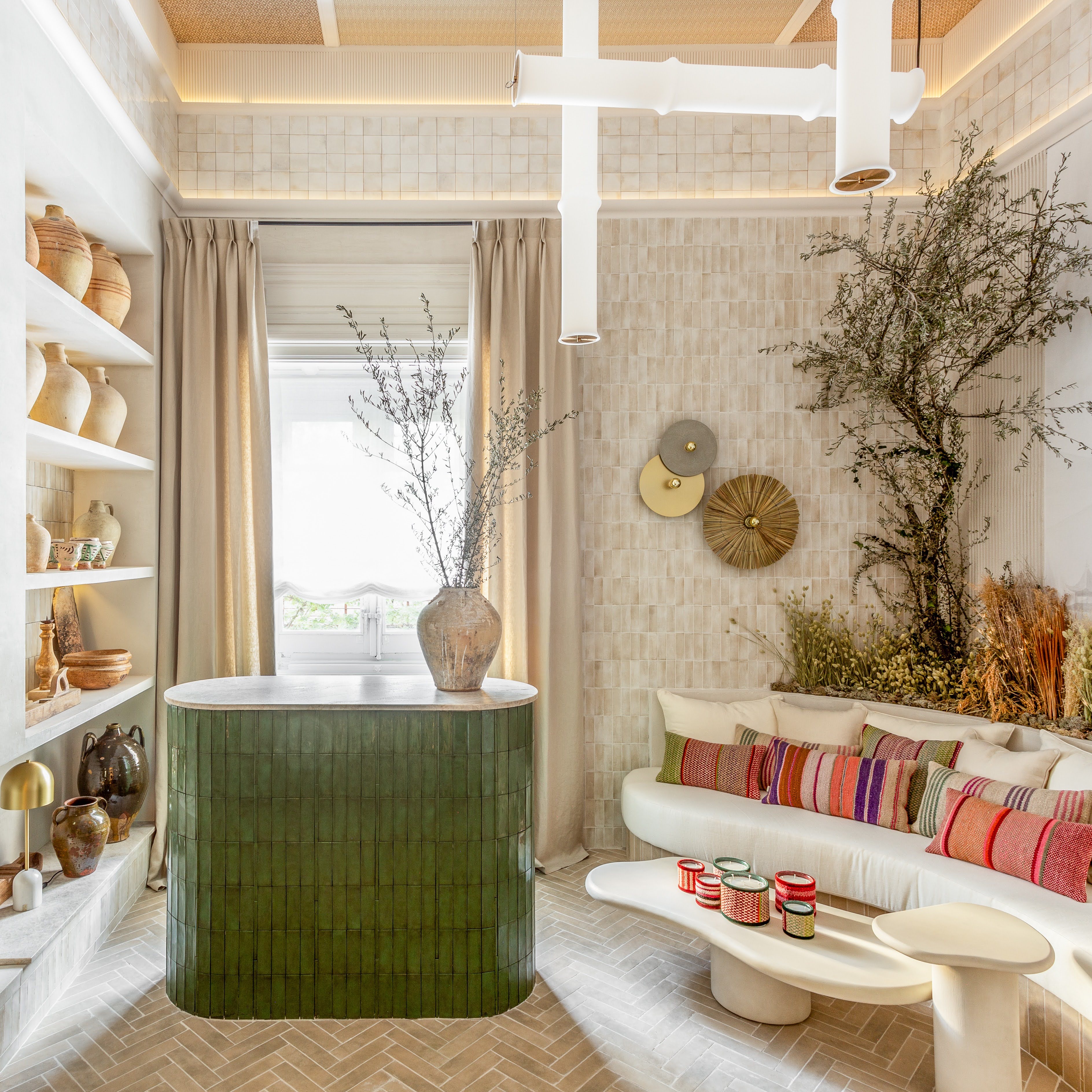 La colección Menorca se inspira en la cerámica artesanal para ofrecer una alta decoración única y sofisticada.Disponible en formatos de 10x10 cm y 6,5x32,8 cm, permite crear diversos patrones y combinaciones. Fabricada en pasta blanca, sus bordes irregulares y esmalte fundente evocan la autenticidad de la cerámica hecha a mano, con un sutil craquelado que añade textura y profundidad. Con 9 colores altamente destonificados, Menorca ofrece una rica variedad de relieves y gráficos, permitiendo una personalización completa y un estilo dinámico y sofisticado en cualquier espacio.