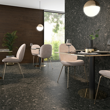 Procedente de las orillas del lago italiano de Iseo, Gransasso reproduce fielmente la grandeza del Ceppo di Gré. Una roca sedimentaria altamente decorativa, en superficie mate, que se articula en dos colores: blanco y negro, que prevalecen como estándares supremos de la elegancia.