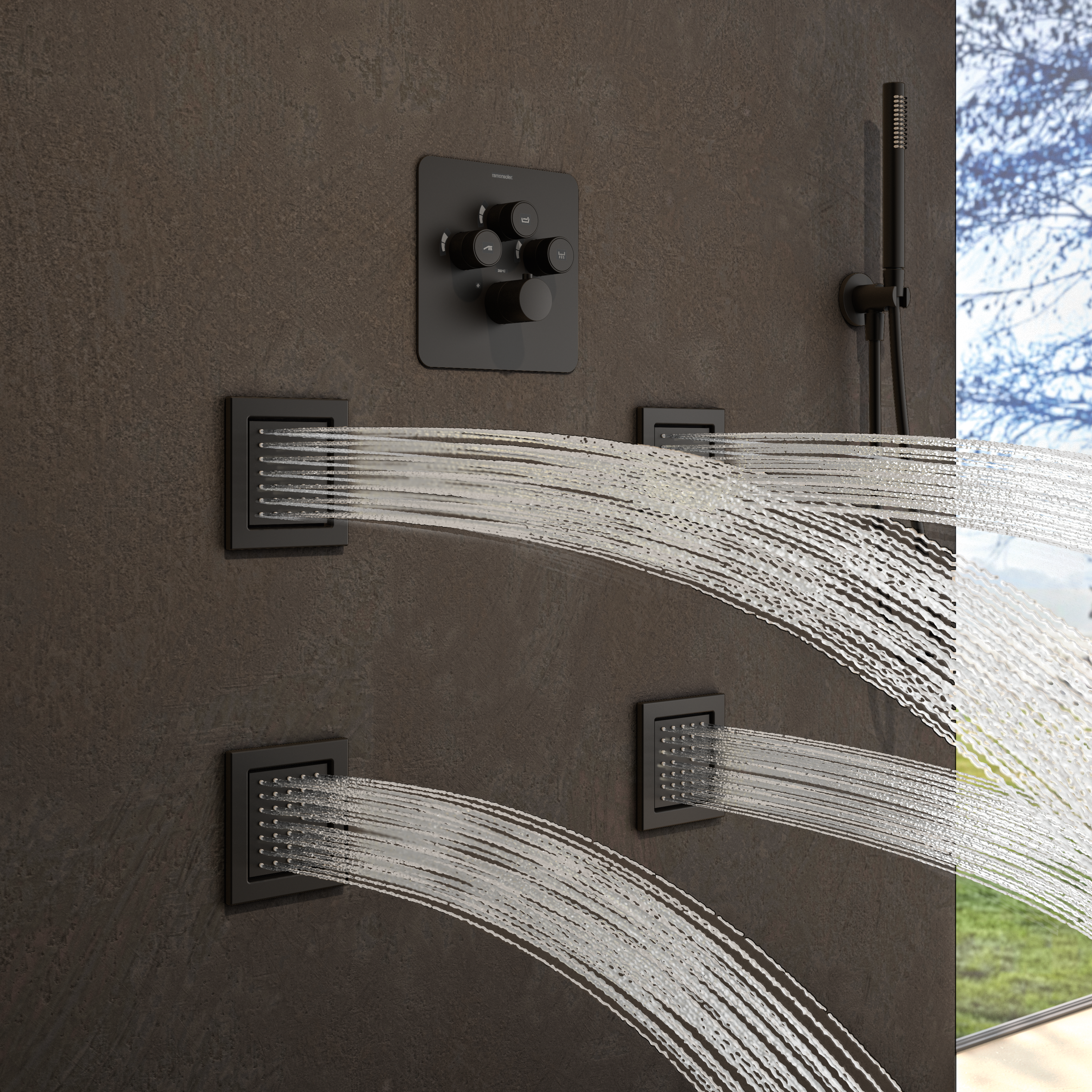 Consigue la ducha perfecta: selección de temperatura, selección de la salida de agua y selección de intensidad del agua mediante el caudal, todo ello mediante unos botones con doble función. El diseño minimalista permite combinar RS Smart con toda la gama de productos de ramonsoler, especialmente los de hidroterapia.