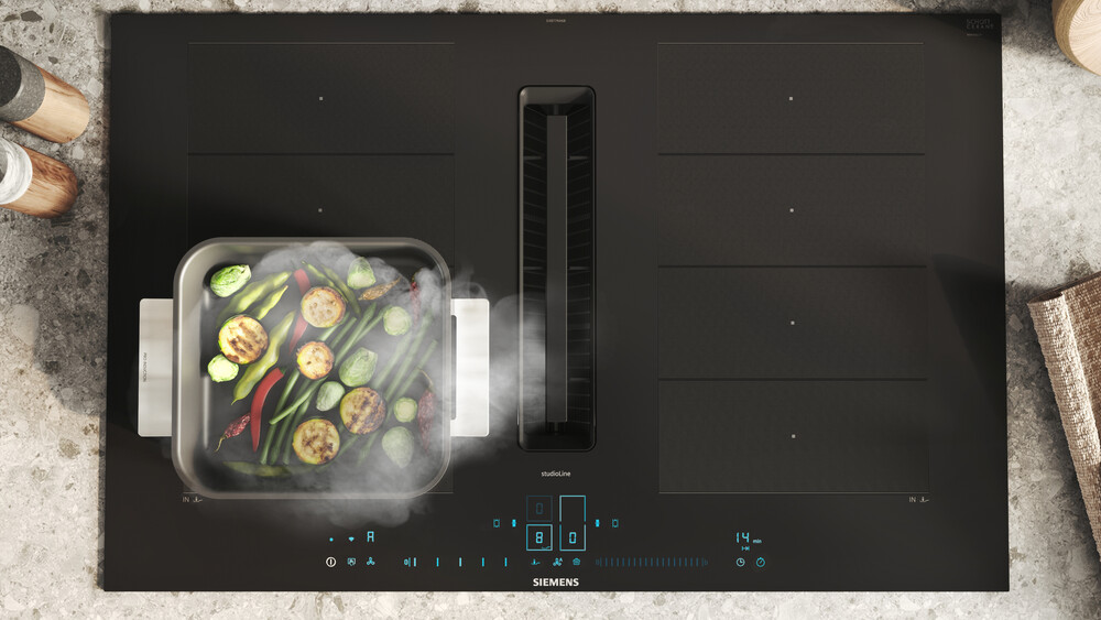 Obra de diseño y de máxima funcionalidad ideal para cocinas abiertas. Destaca su tecnología de inducción y extracción, control táctil y remoto, función boost para alcanzar las temperaturas más rápidas y capacidades más altas de extracción en el menor tiempo, además de su diseño y display casi invisible. Con esta placa, cada celebración en casa detonará la libertad en la cocina y en quienes cocinen.