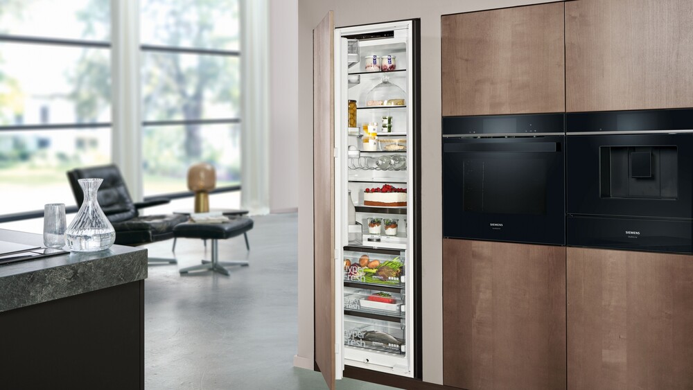 El frigorífico y congelador integrable Siemens studioLine, la combinación perfecta de elegancia y tecnología avanzada, diseñado para integrarse perfectamente en cualquier cocina moderna. Con acabados interiores en acero inoxidable de alta calidad y su diseño elegante, este electrodoméstico ofrece un toque de sofisticación, manteniendo la continuidad visual del espacio. La combinación integrable de Siemens StudioLine no solo proporciona una funcionalidad excepcional, sino que también realza la estética de tu cocina, convirtiéndose en un elemento esencial para quienes buscan calidad y estilo en su hogar.