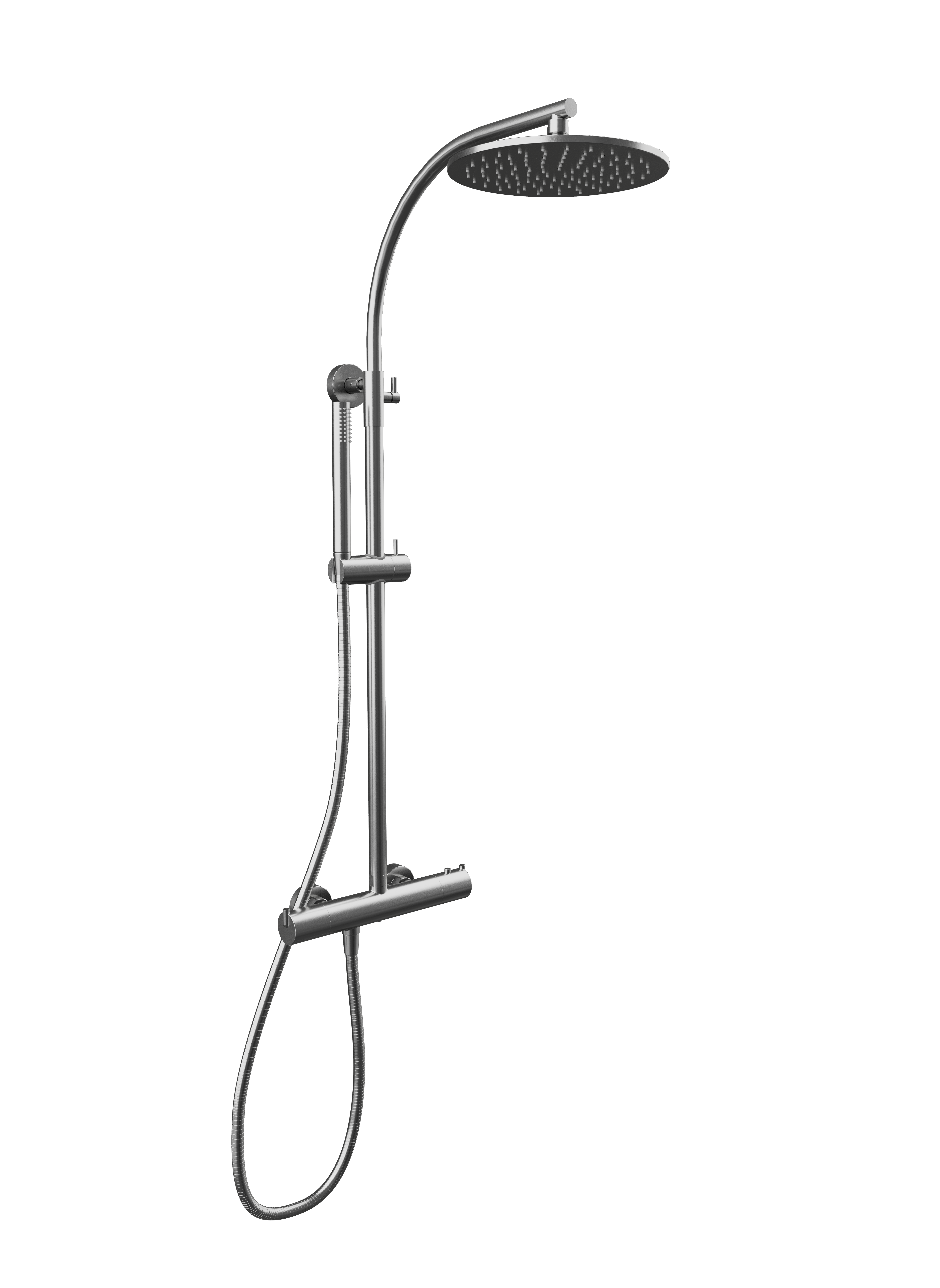Grifería Origehm, destaca su forma tubular y el detalle de la maneta que imita a la forma de una gota de agua. Grifería de acabado níquel cepillado, arranque en frío, consumo eco de agua. Además las columnas de ducha incluyen sistema Healthy. Innovación que permite evacuar el agua de la columna tras cada uso, evitando la proliferación de bacterias, por tanto cuidan no sólo de la salud de las personas sino del medio ambiente.