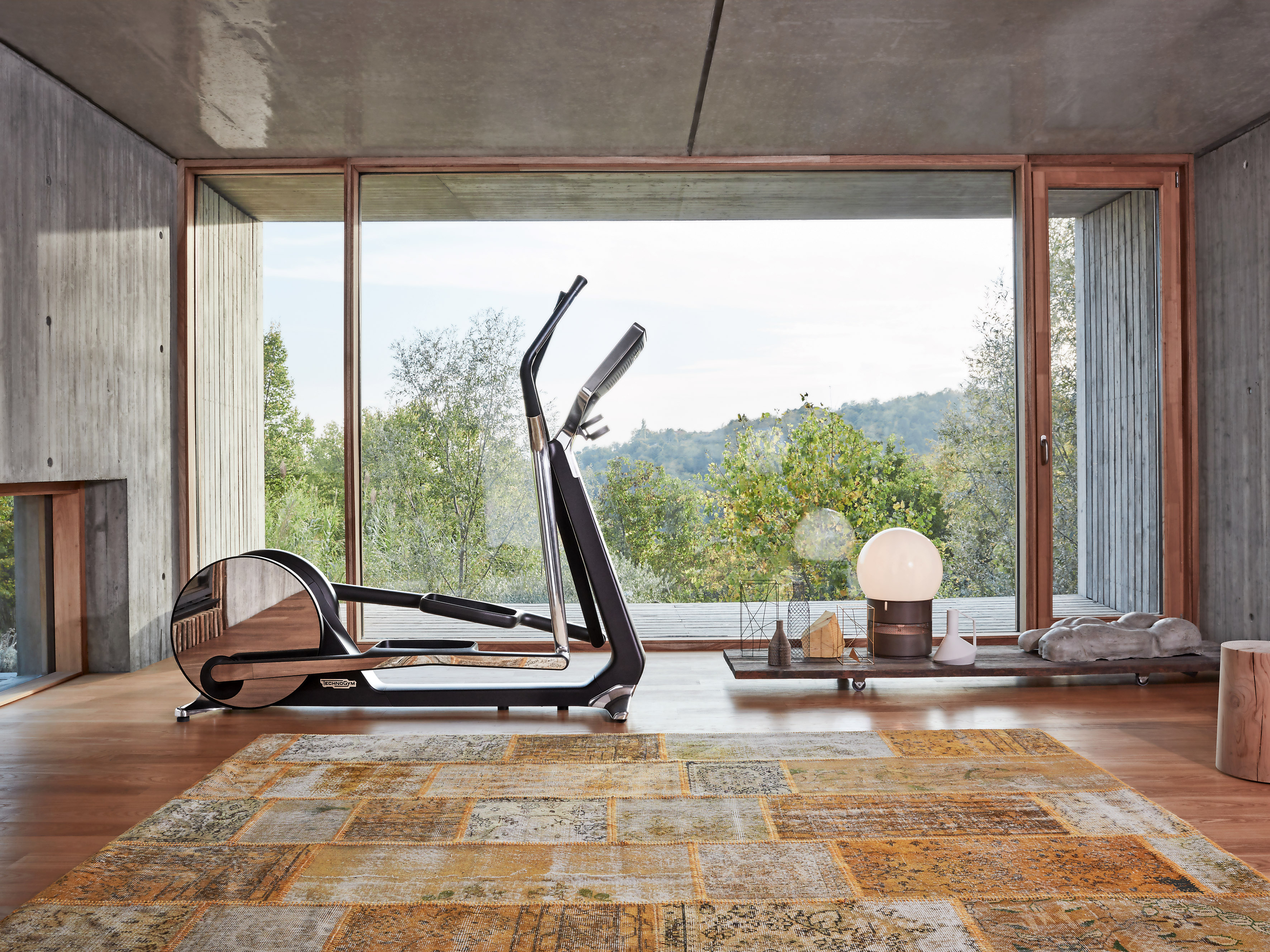 La elíptica más exclusiva, creada por Antonio Citterio. Las líneas curvas y luminosas reflejan la mecánica más fluida jamás lograda. Una declaración de diseño.