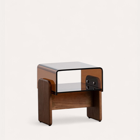 Mesa Auxiliar Rectangular de Cristal Curvado y Madera (45,5x40 cm) Clery
