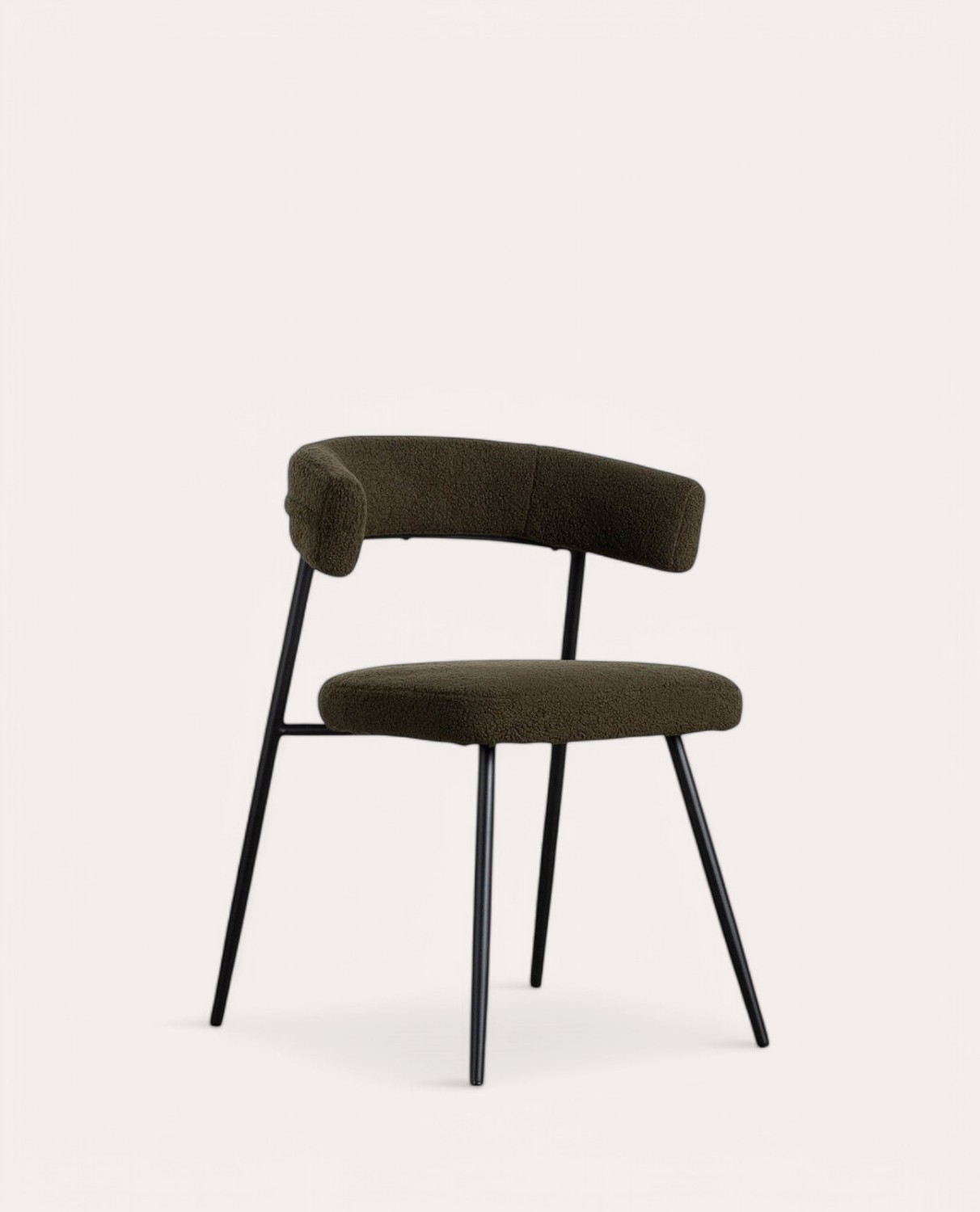 La Silla de Comedor de Metal Eloise Bouclé es un indispensable para cualquier hogar. Está tapizada con tela de poliéster tipo bouclé o de borreguito muy resistente al uso y suave al tacto. Además de ser tendencia, su comodidad y suavidad lo convierten en un must de la temporada que añadirá calidez y estilo a tus estancias. Una silla de diseño para renovar tu decoración que es apta para salón, comedor, oficina o dormitorios.