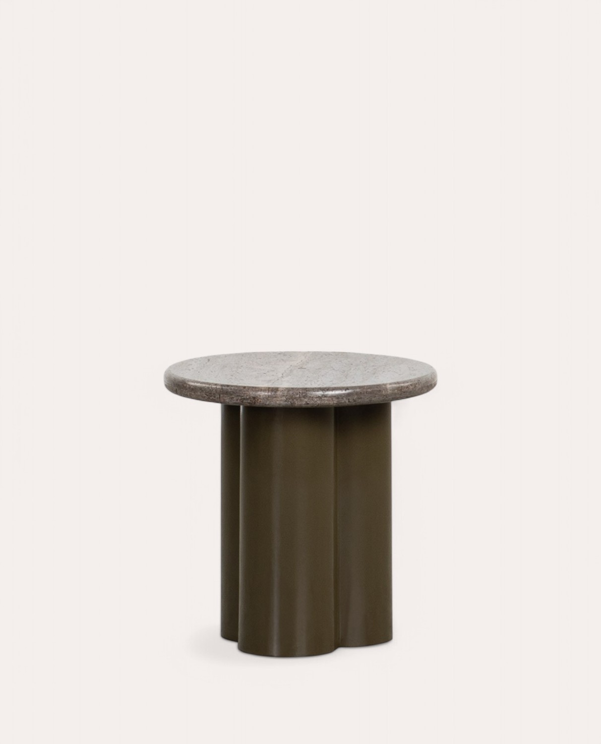 Mesa Auxiliar Redonda de Mármol Travertino y Metal (Ø40,5 cm) Trébolo