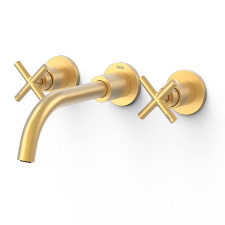 Grifo bimando empotrado para lavabo, en acabado oro mate de 24k, de la colección Mont Blanc, de Tres (28330002OM)