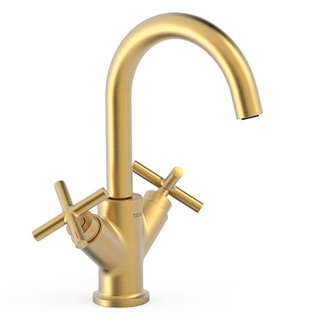 Grifo bimando para lavabo, en acabado oro mate de 24k, de la colección Mont Blanc, de Tres (28310301OM)