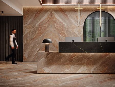 El Breccia Oniciata es un mármol italiano muy apreciado en el mundo de la arquitectura y el diseño por su belleza distintiva y su carácter único. Con un tono beige intenso, la propuesta de Venux para esta piedra sinterizada respeta a la perfección el aspecto natural de Breccia Oniciata, ofreciendo una textura rica con vetas y fragmentos contrastados. Su aspecto elegante lo hace ideal tanto para estilos clásicos como modernos siempre recreando lujo y sofisticación.
